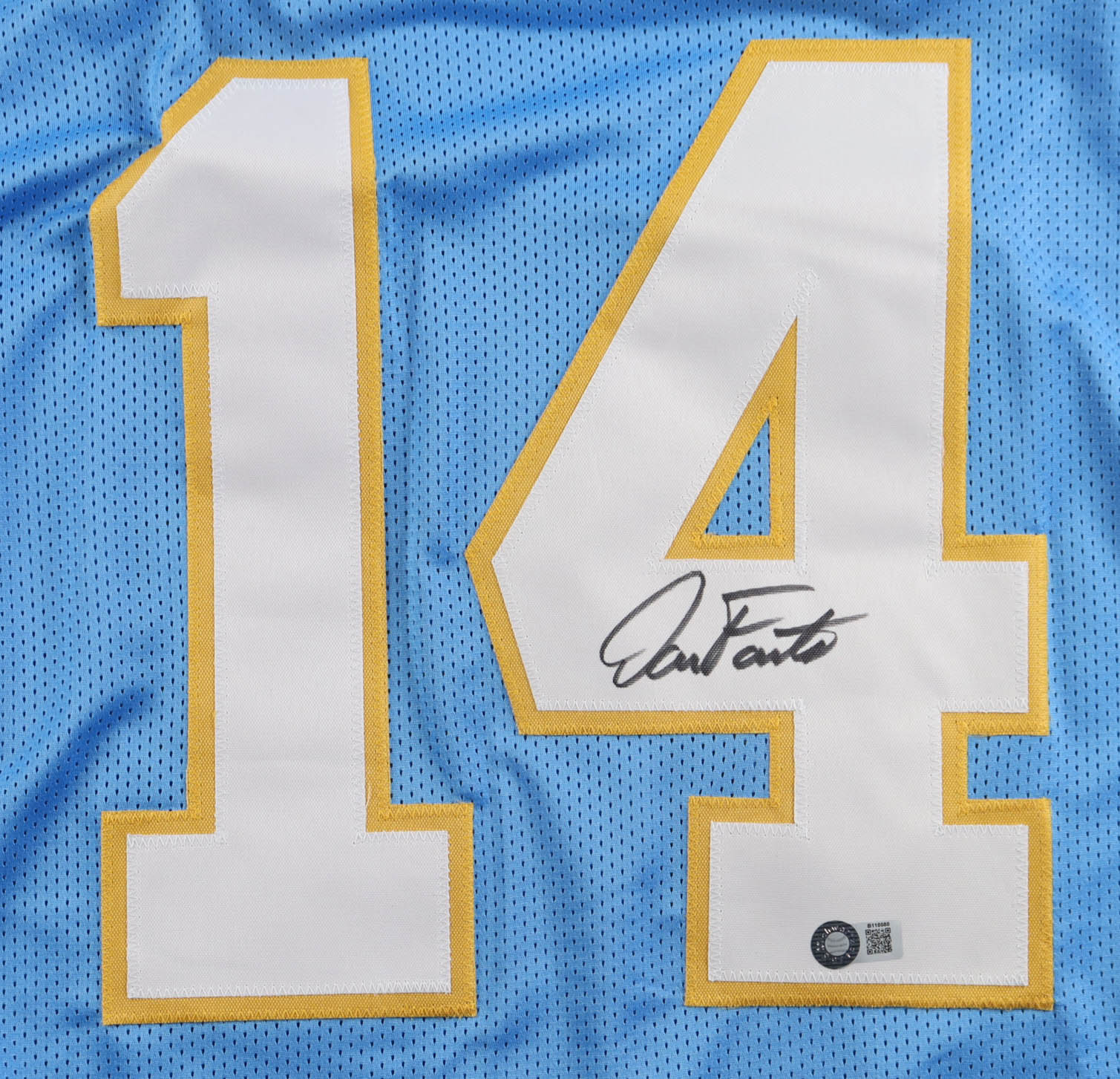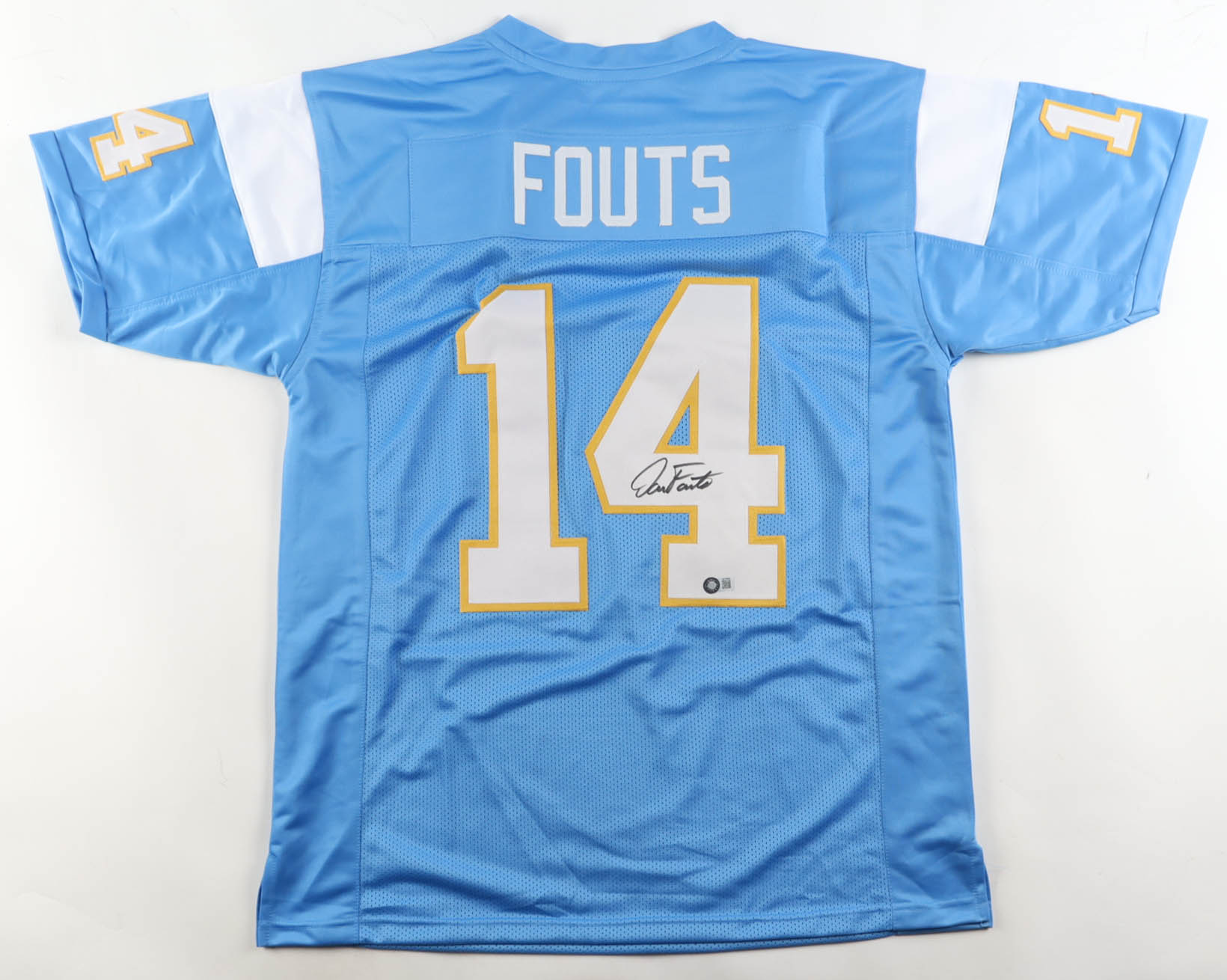 Custom jersey with everything sewn on, size XL. Hand-signed by Dan Fouts (HOF).