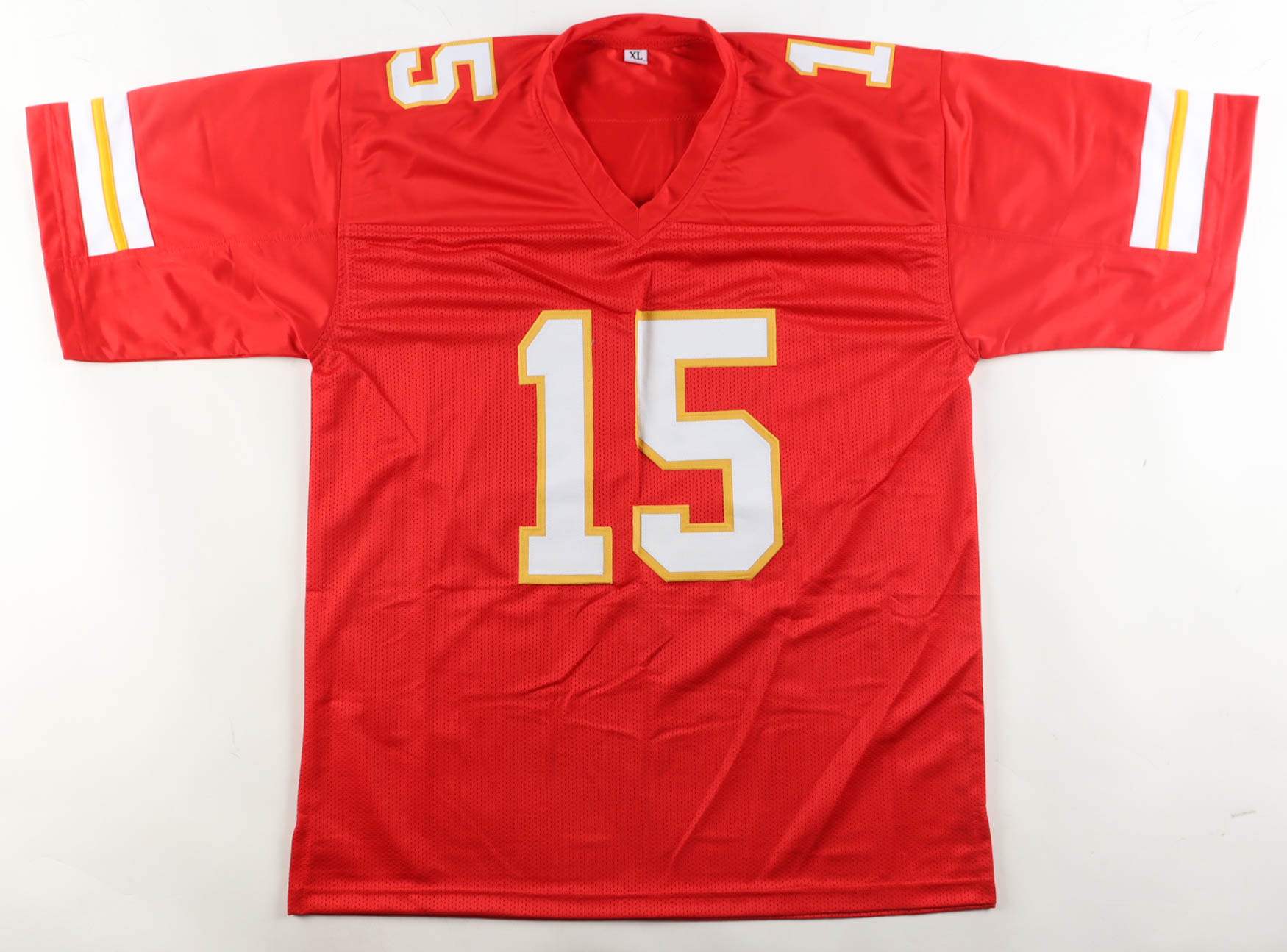 Custom jersey with everything sewn on, size XL. Hand-signed and inscribed by Patrick Mahomes Sr. (Minnesota Twins).