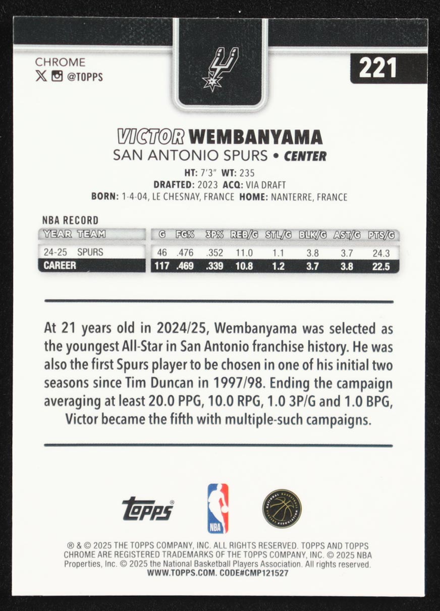 Victor Wembanyama 2025-26 Topps Chrome X-Fractors #221