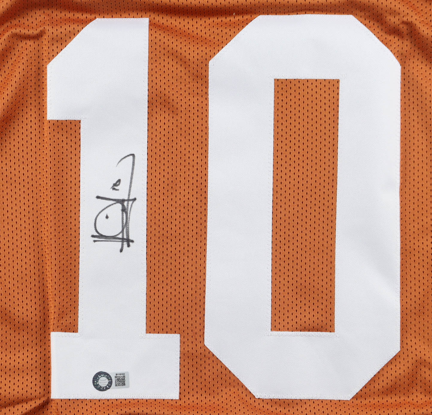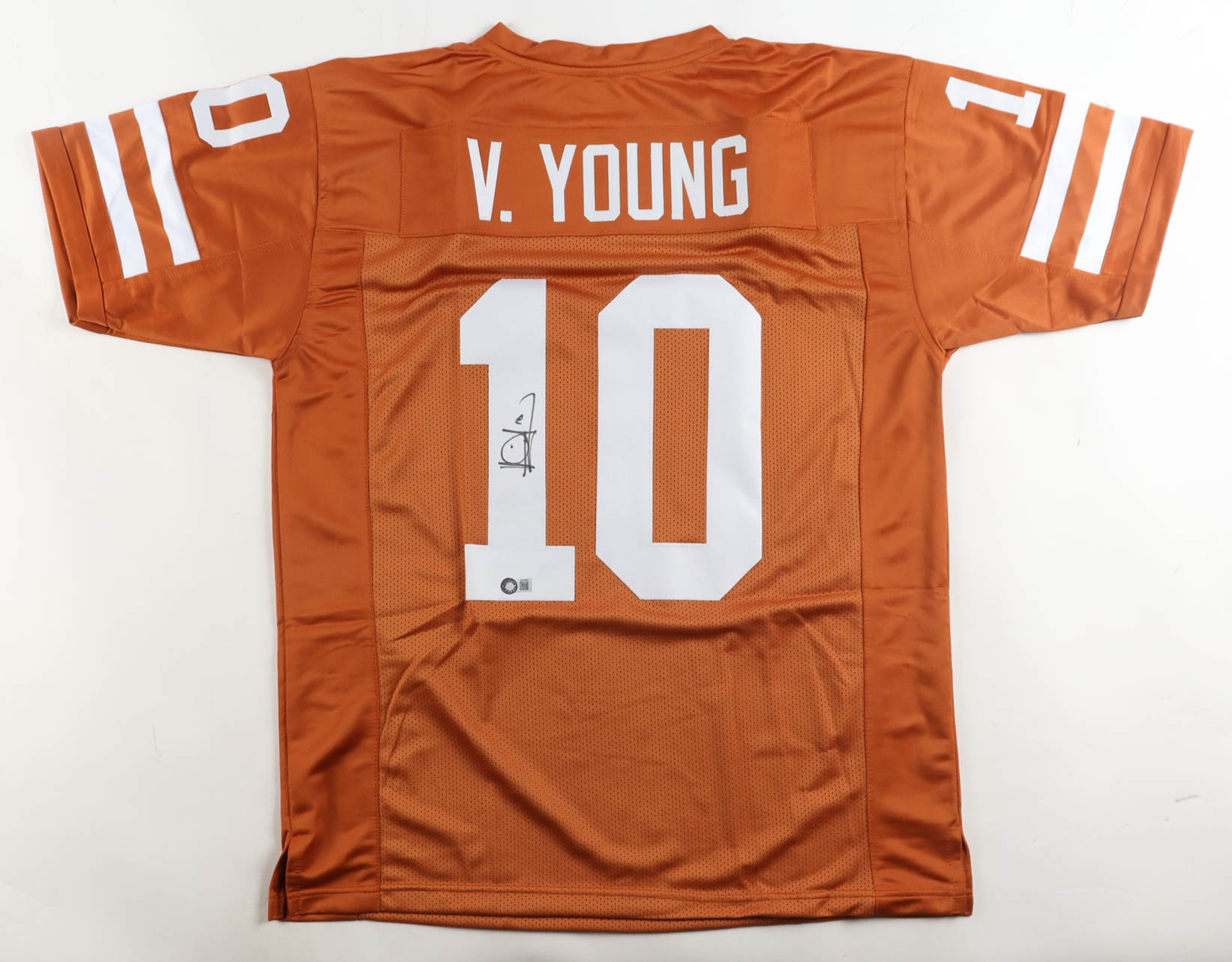 Custom jersey with everything sewn on, size XL. Hand-signed by Vince Young (Texas Longhorns).