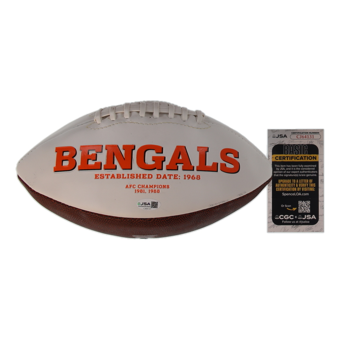Cincinnati Bengals Logo Football. Hand-signed by Tyler Boyd. Please note, there are stains and scuffing throughout the football.