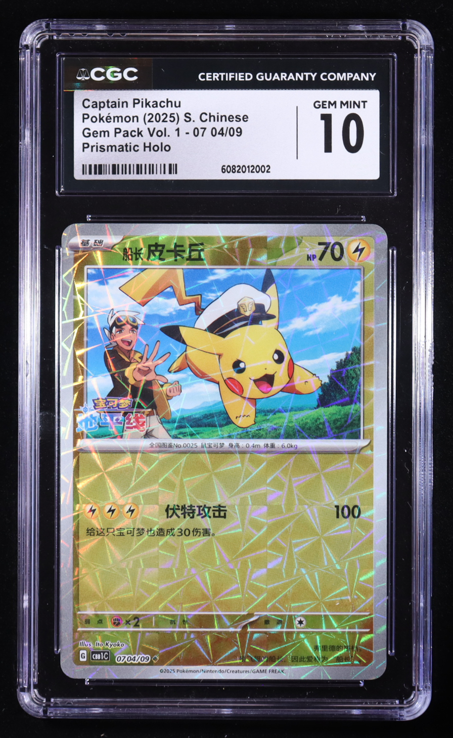 Captain Pikachu 2025 Pokemon TCG Scarlet & Violet Gem Pack Vol.1 Simplified Chinese #0704 Prismatic Holo (CGC 10)