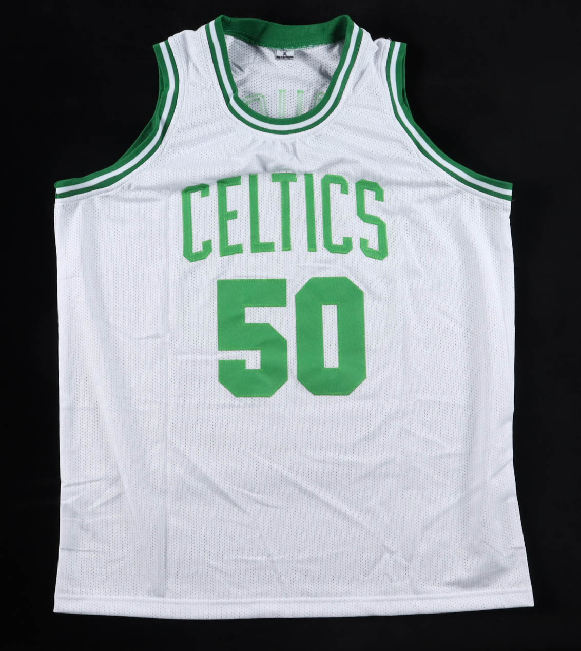 Custom jersey with everything sewn on, size XL. Hand-signed and inscribed by Eddie House (Boston Celtics).