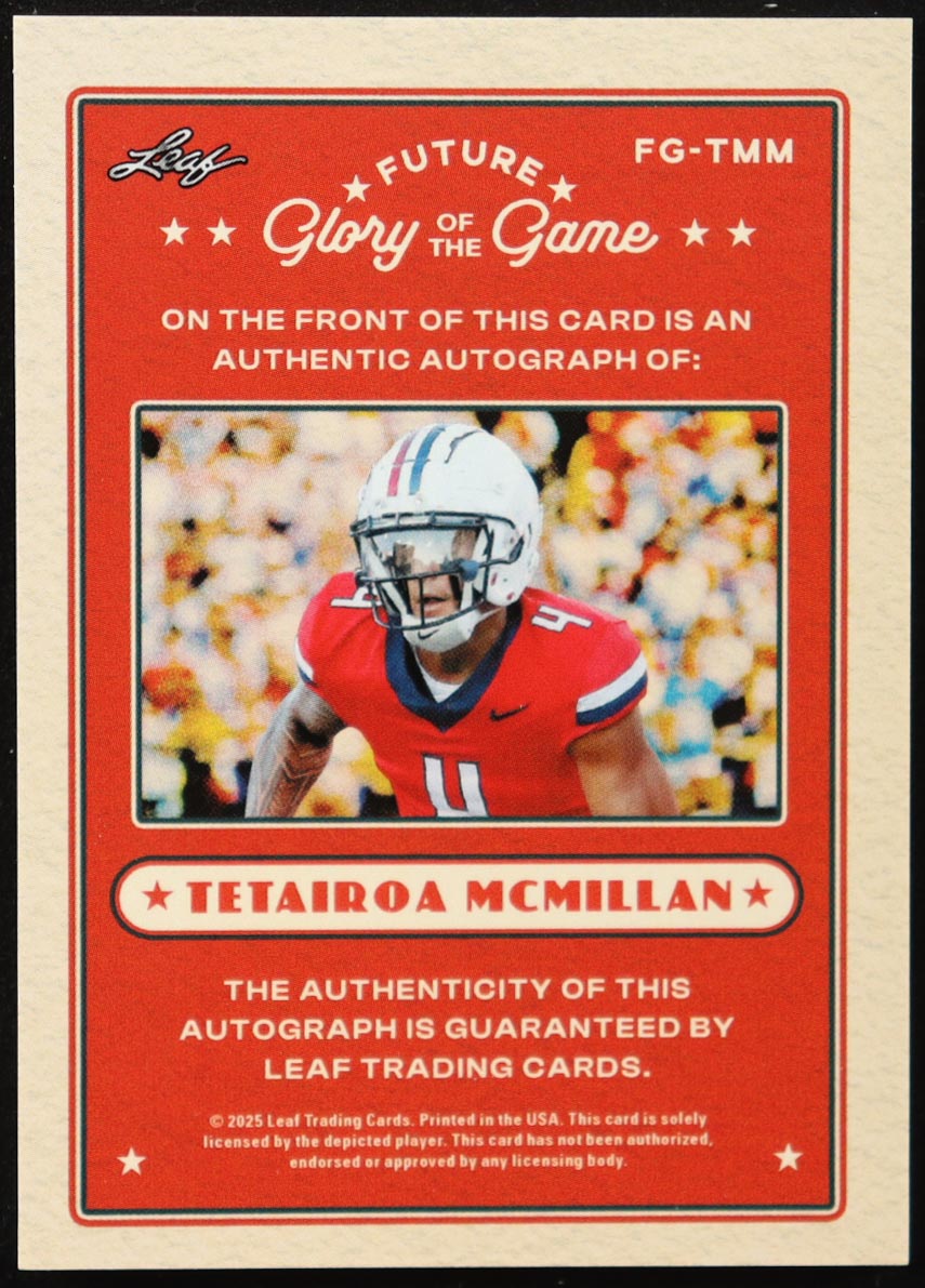 Tetairoa McMillan 2025 Leaf Glory of the Game Future Glory Autographs #FGTMM #16/99 RC