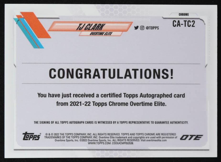 TJ Clark 2021-22 Topps Chrome Overtime Elite Autographs #CATC1 RC
