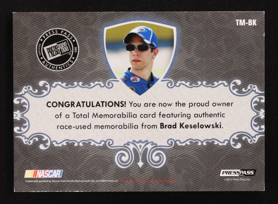 Brad Keselowski 2012 Total Memorabilia Single Swatch Gold Race-Used #TMBK #19/99