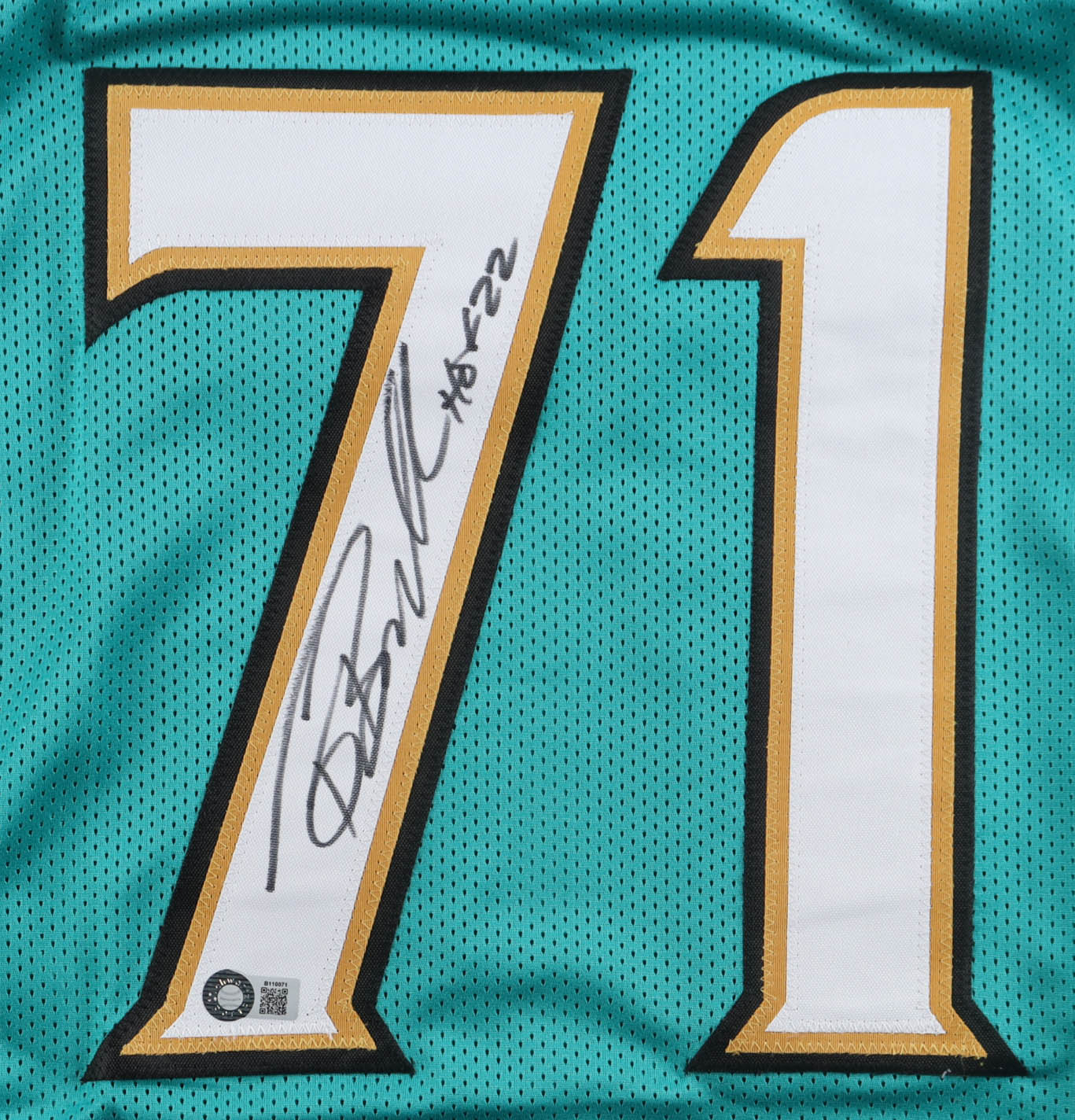 Custom jersey with everything sewn on, size XL. Hand-signed by Tony Boselli (HOF).
