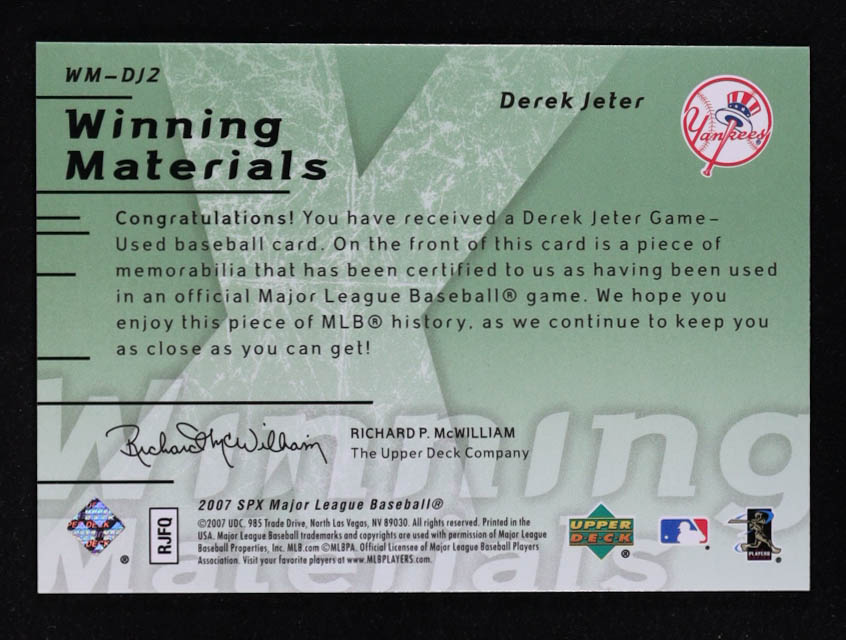 Derek Jeter 2007 SPx Winning Materials 175 Green #DJ2 #166/175