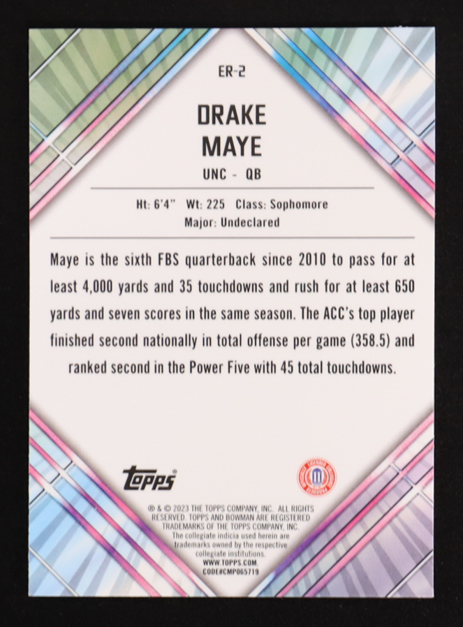 Drake Maye 2023 Bowman Chrome University Unexpected Delights Early Risers #ER2 RC