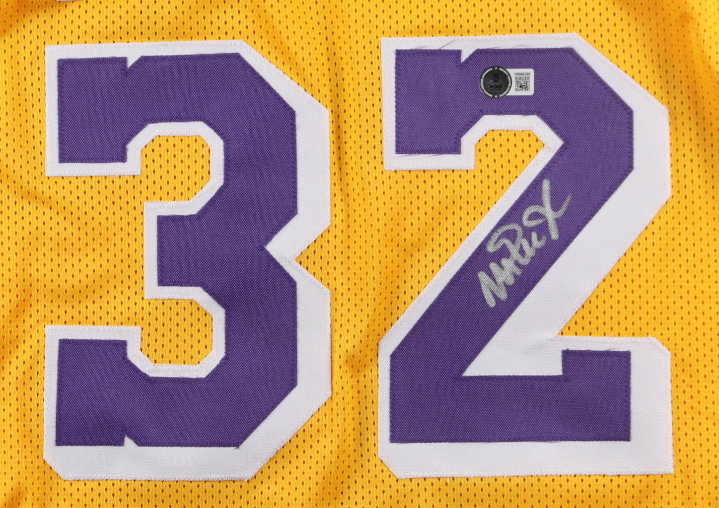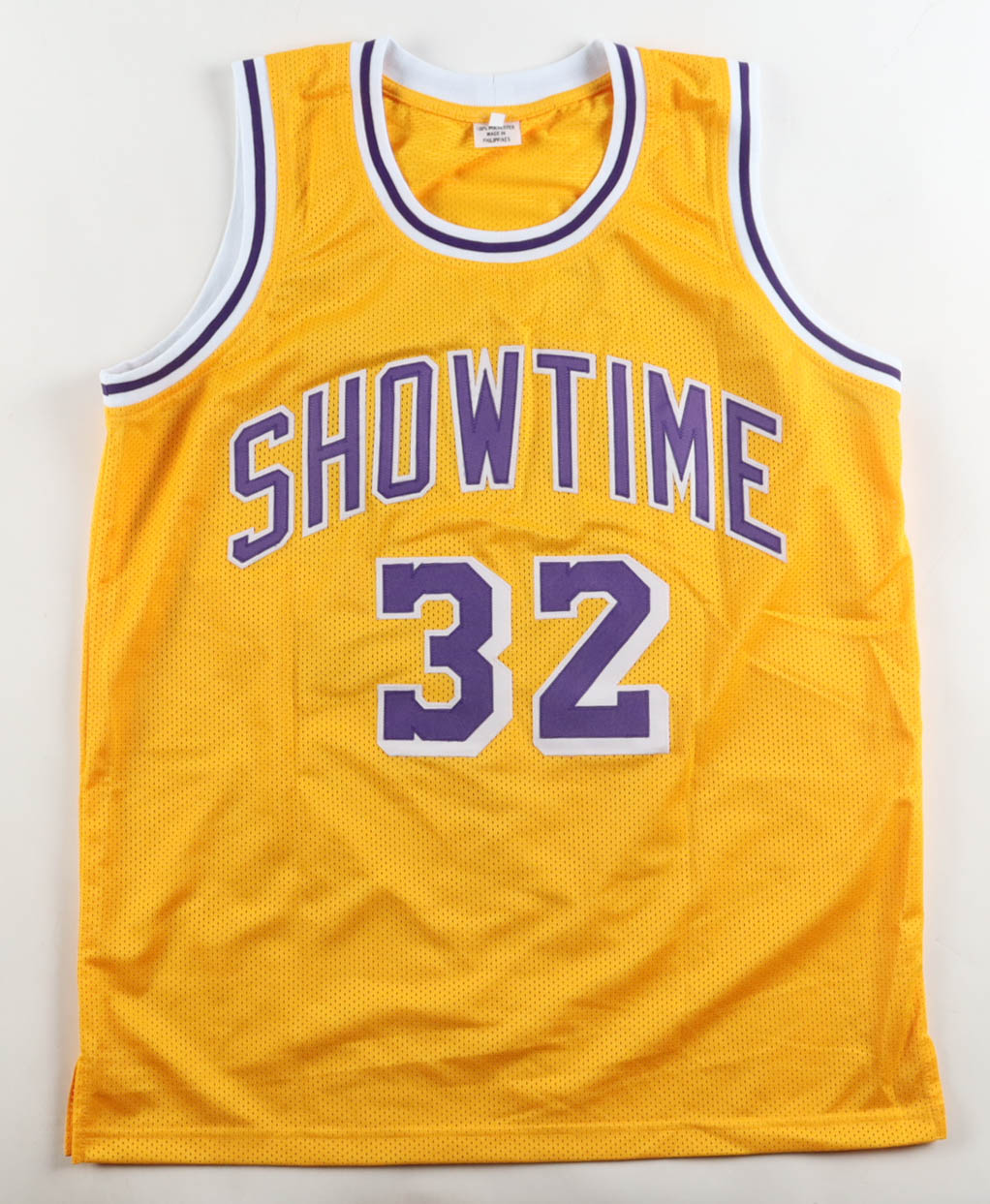 Custom jersey with everything sewn on, size XL. Hand-signed by Magic Johnson (Los Angeles Lakers, HOF).