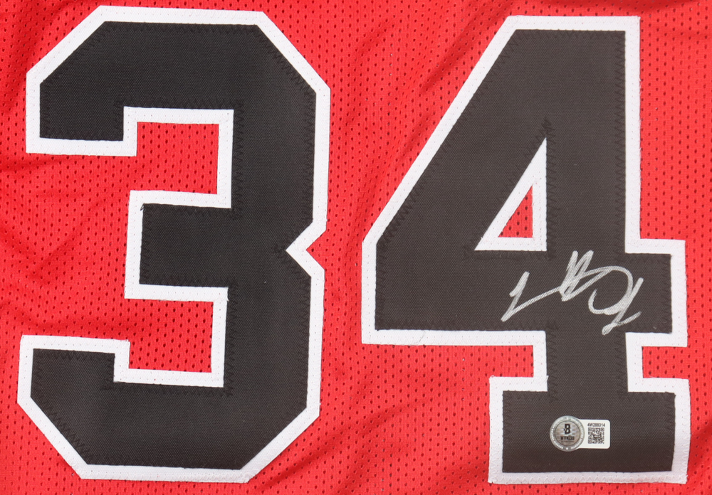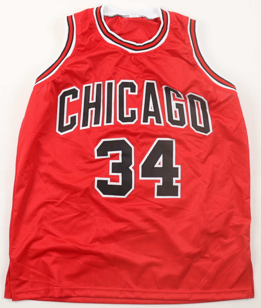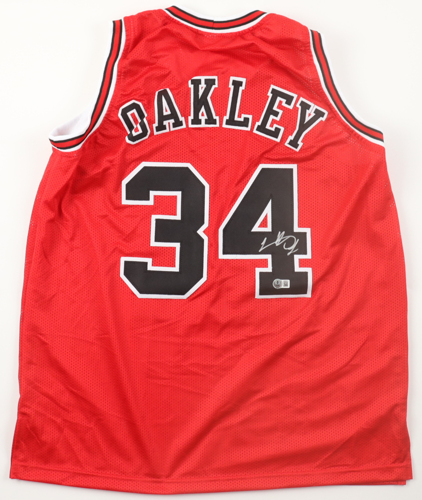 Custom jersey with everything sewn on, size XL. Hand-signed by Charles Oakley.