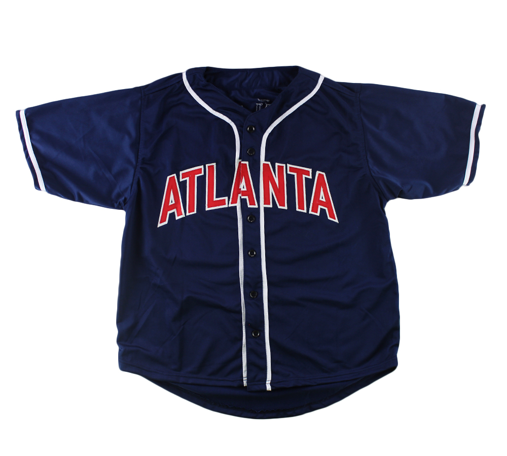 Custom jersey with everything sewn on, size XL. Hand-signed by Ronald Acuna Jr.