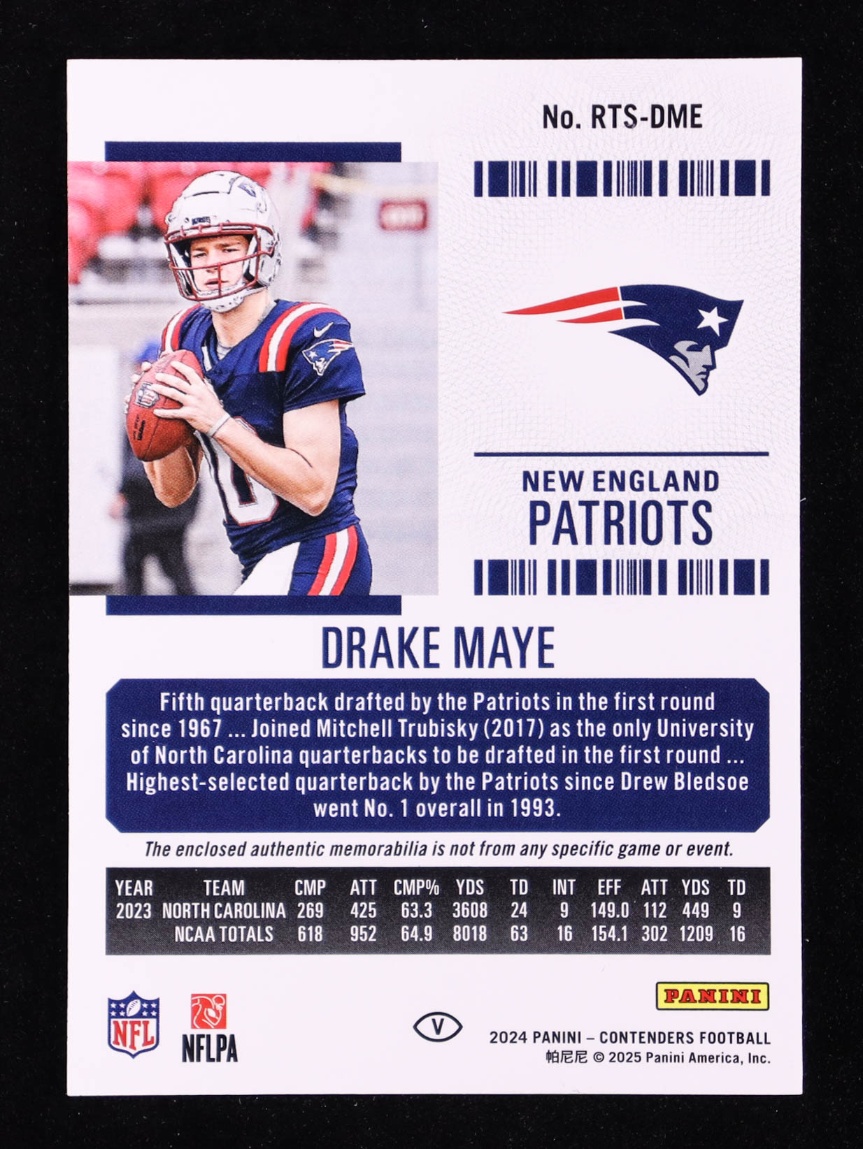 Drake Maye 2024 Panini Contenders Rookie Ticket Swatches Variations #11 RC