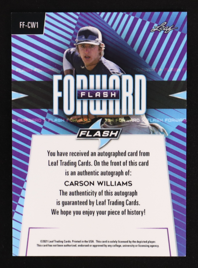 Carson Williams 2021 Leaf Flash Flash Forward Silver #FFCW1 RC