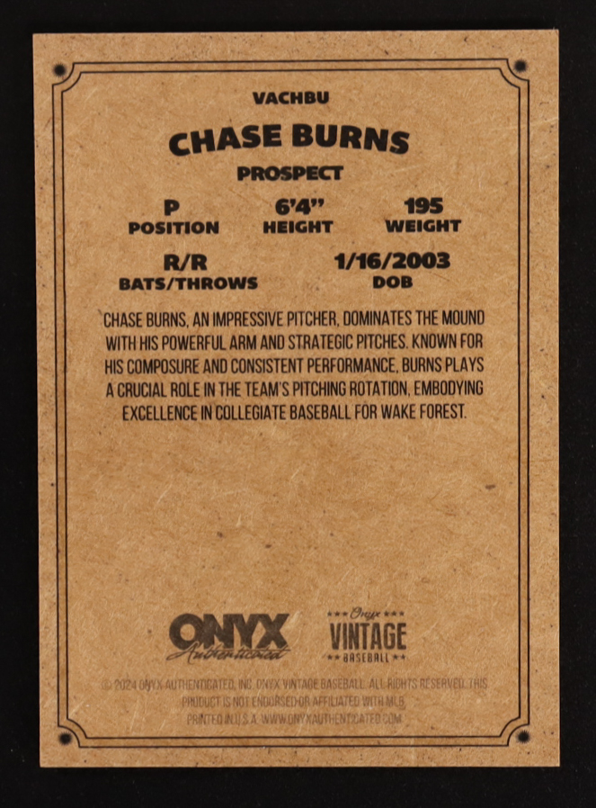 Chase Burns 2024 Onyx Vintage Autographs #VACHBU RC