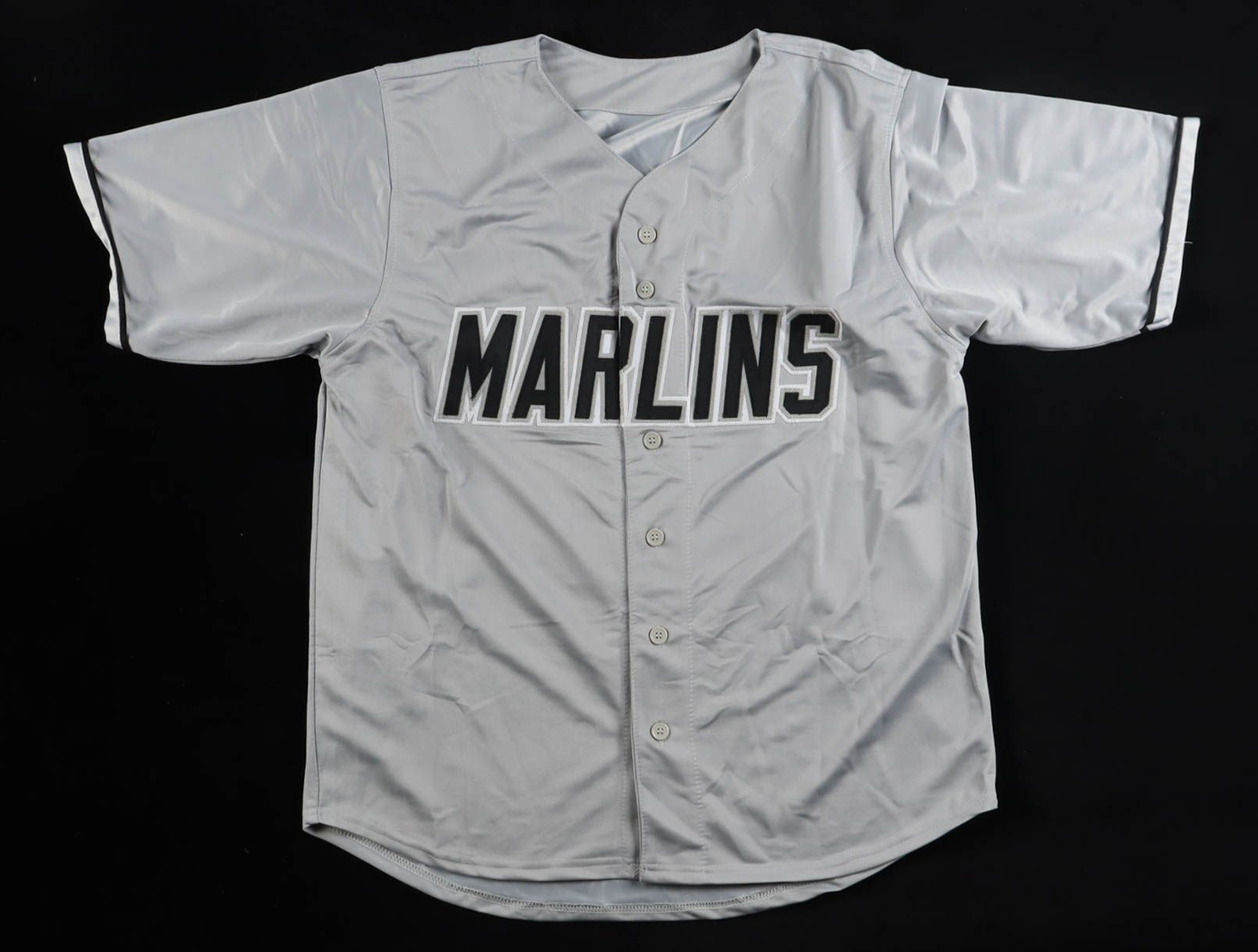 Custom jersey with everything sewn on, size XL. Hand-signed and inscribed by Livan Hernandez.