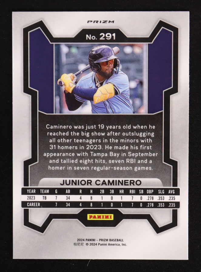 Junior Caminero 2024 Panini Prizm Prizms Green Ice #291 RC
