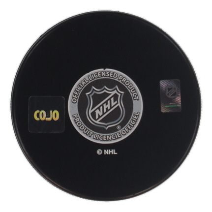 Colorado Avalanche Logo Hockey Puck. Hand-signed by Peter Forsberg (HOF). Please note, there are stains throughout the puck.