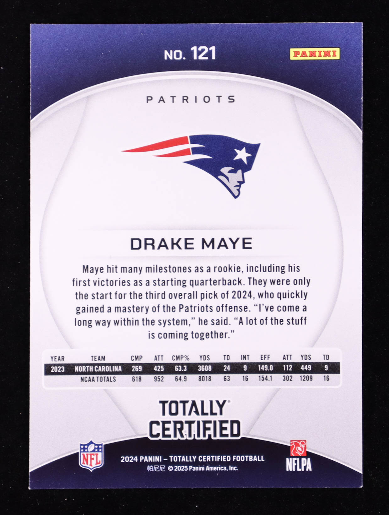 Drake Maye 2024 Totally Certified Mirror Purple #121 RC