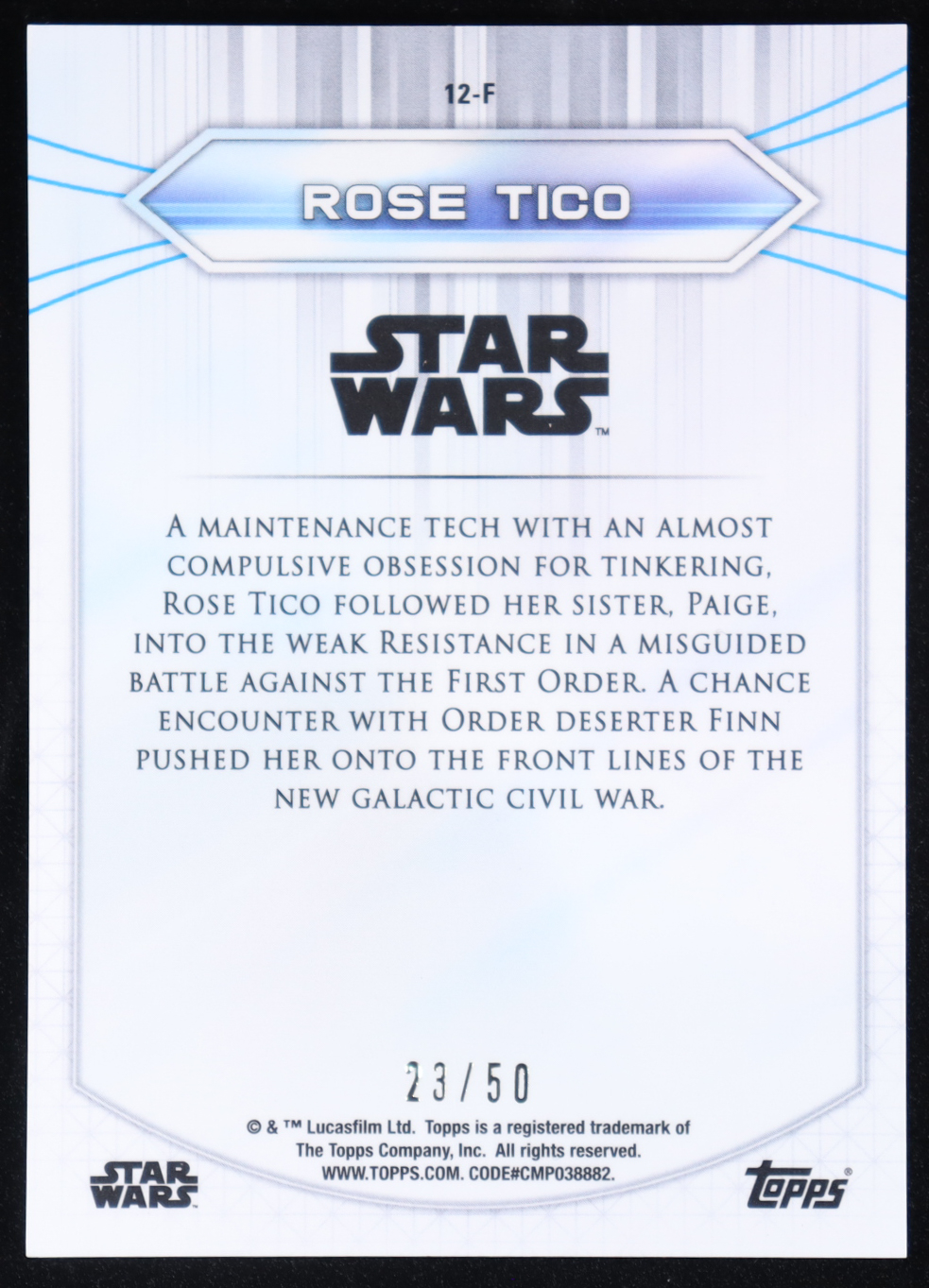 Rose Tico 2020 Topps Star Wars Chrome Perspectives Resistance vs. First Order Gold Refractors #12F #23/50