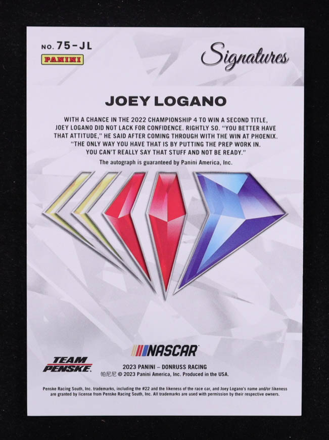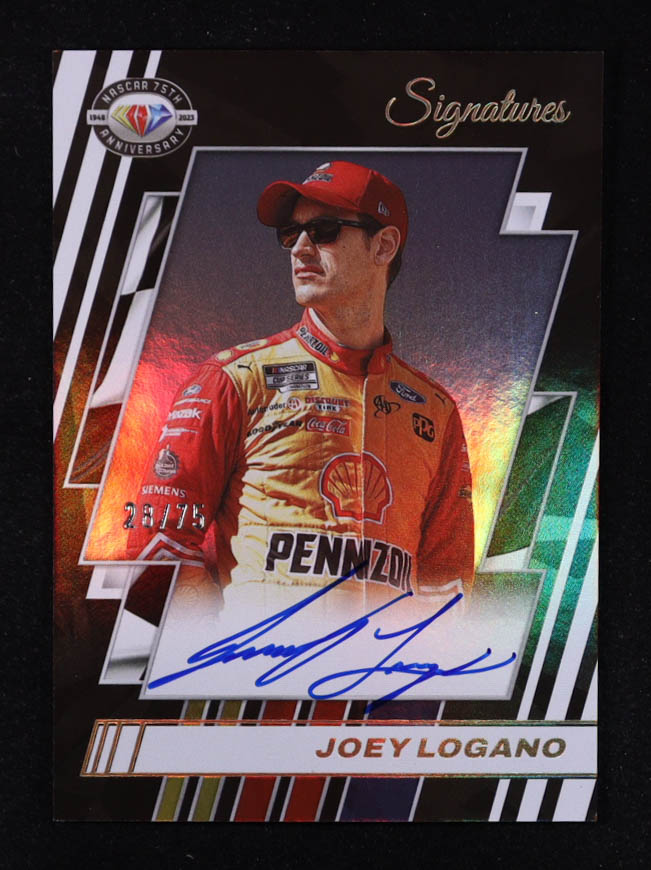 Joey Logano 2023 Donruss NASCAR 75th Anniversary Signatures Holo Gold #75JL #28/75