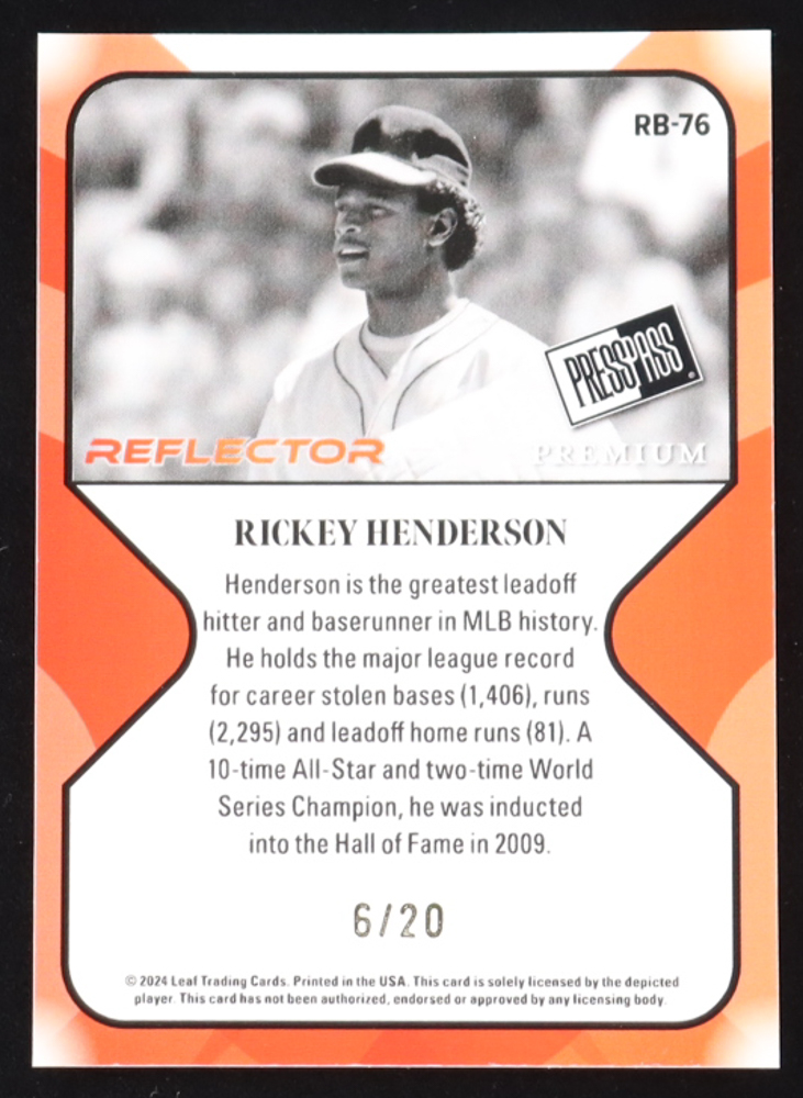 Rickey Henderson 2024 Press Pass Premium Retro Reflector Prismatic Blue #RB76 #06/20