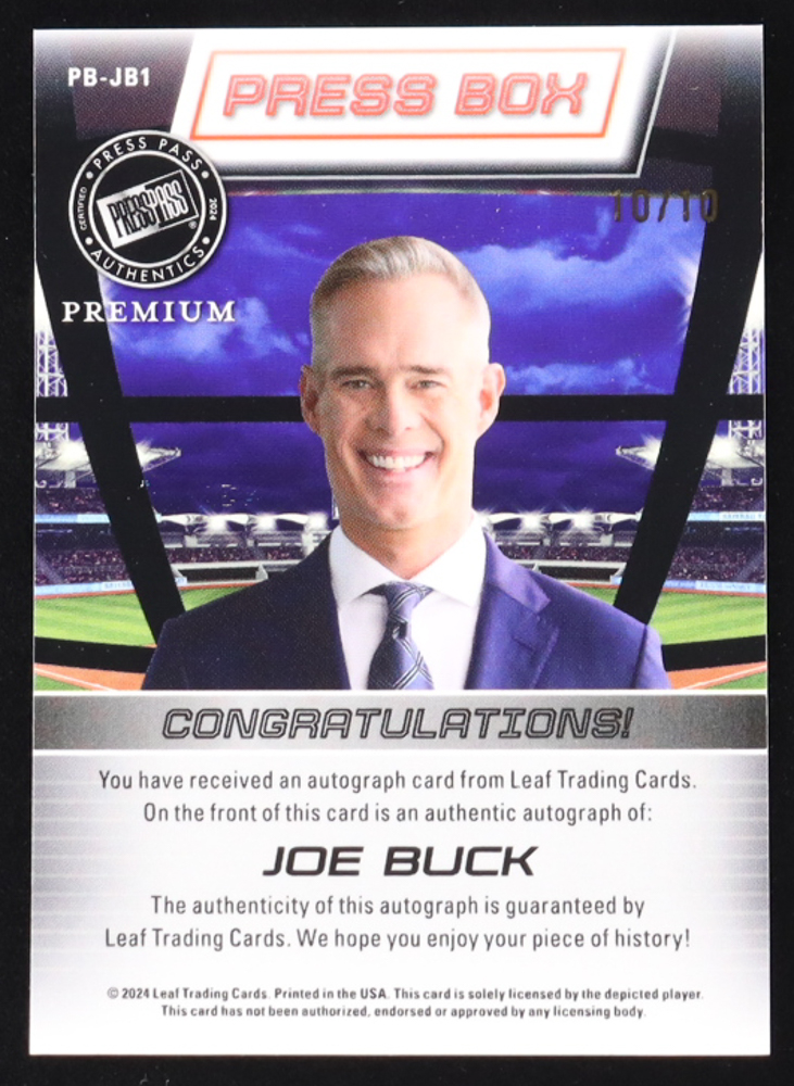 Joe Buck 2024 Press Pass Premium Press Box Autographs Prism Blue #PBJB1 #10/10