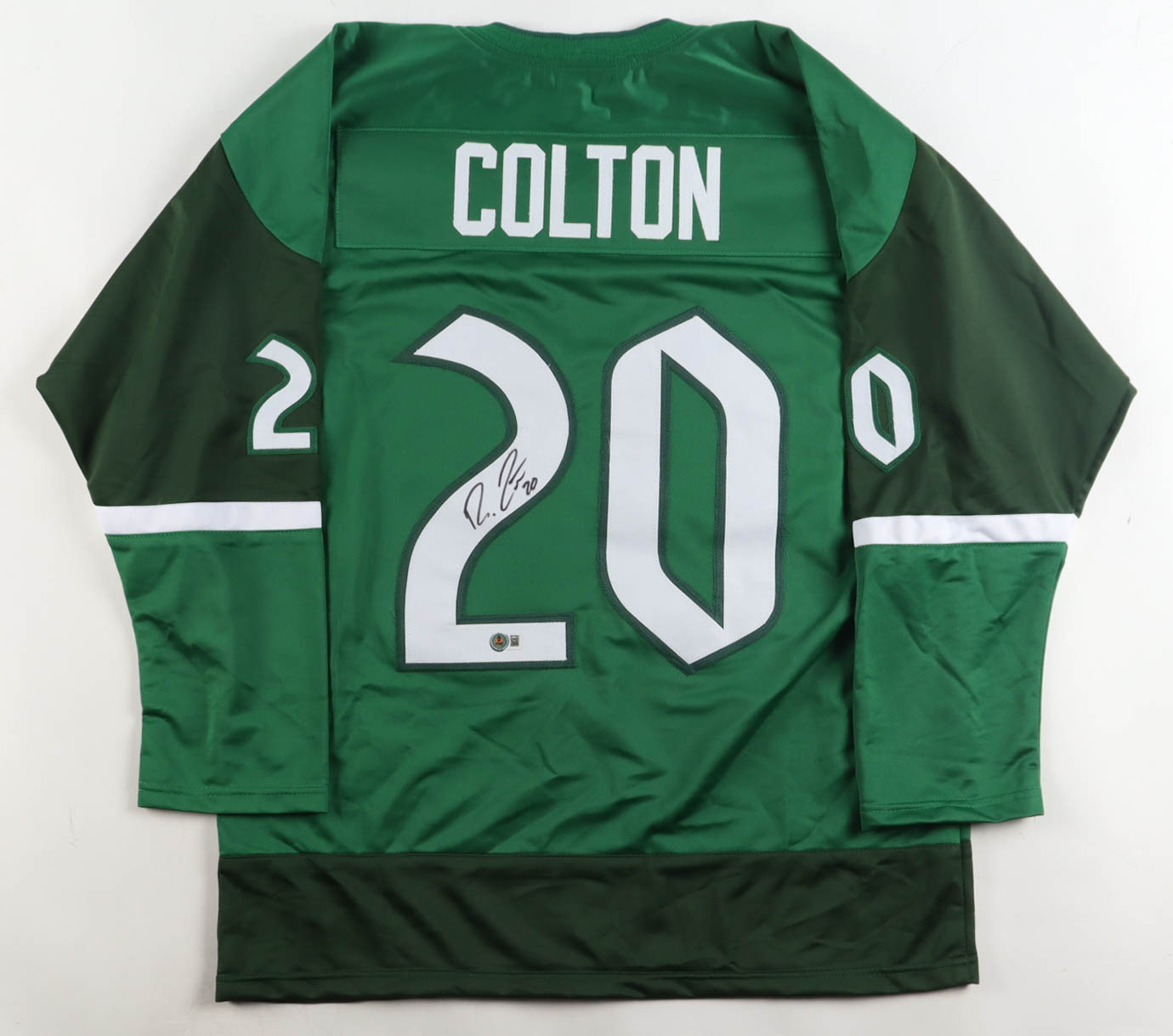 Custom jersey. Everything sewn on, size XL. Hand-signed by Ross Colton.