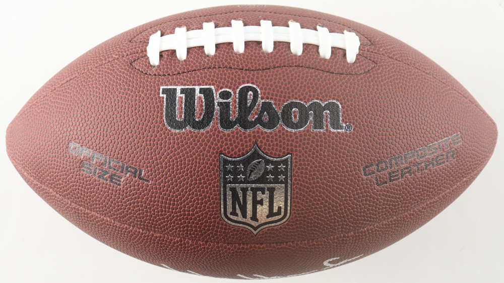Wilson composite leather full-size NFL football has been hand-signed and inscribed by John Hannah (New England Patriots, HOF).