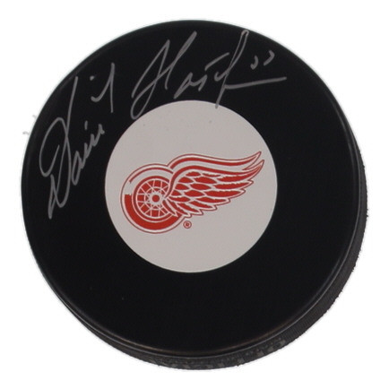 Detroit Red Wings Logo Hockey Puck. Hand-signed by Dominik Hasek (HOF). Please note, there are stains throughout the puck.