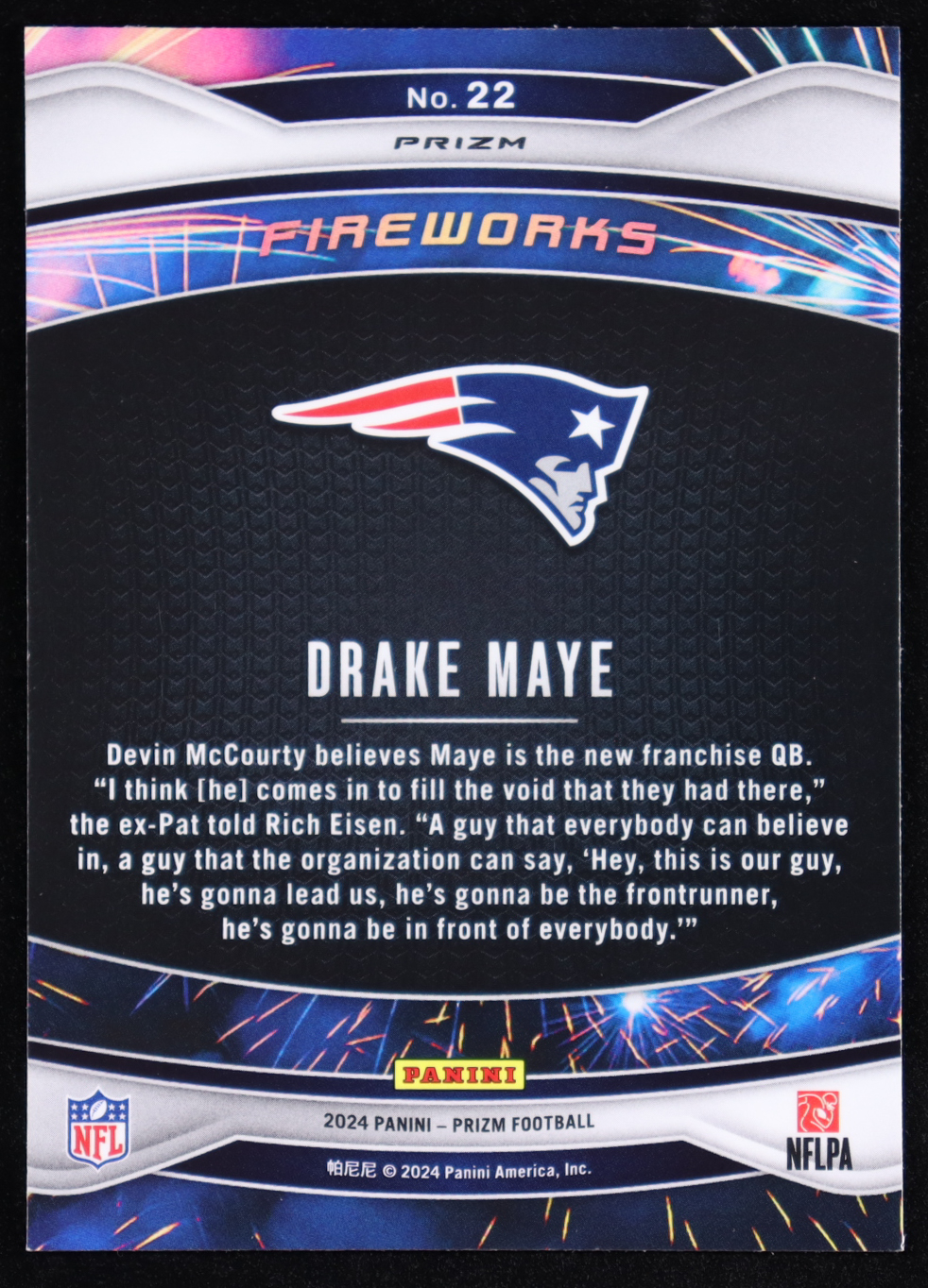 Drake Maye 2024 Panini Prizm Fireworks #22 RC