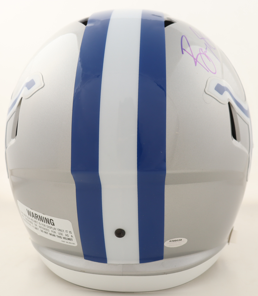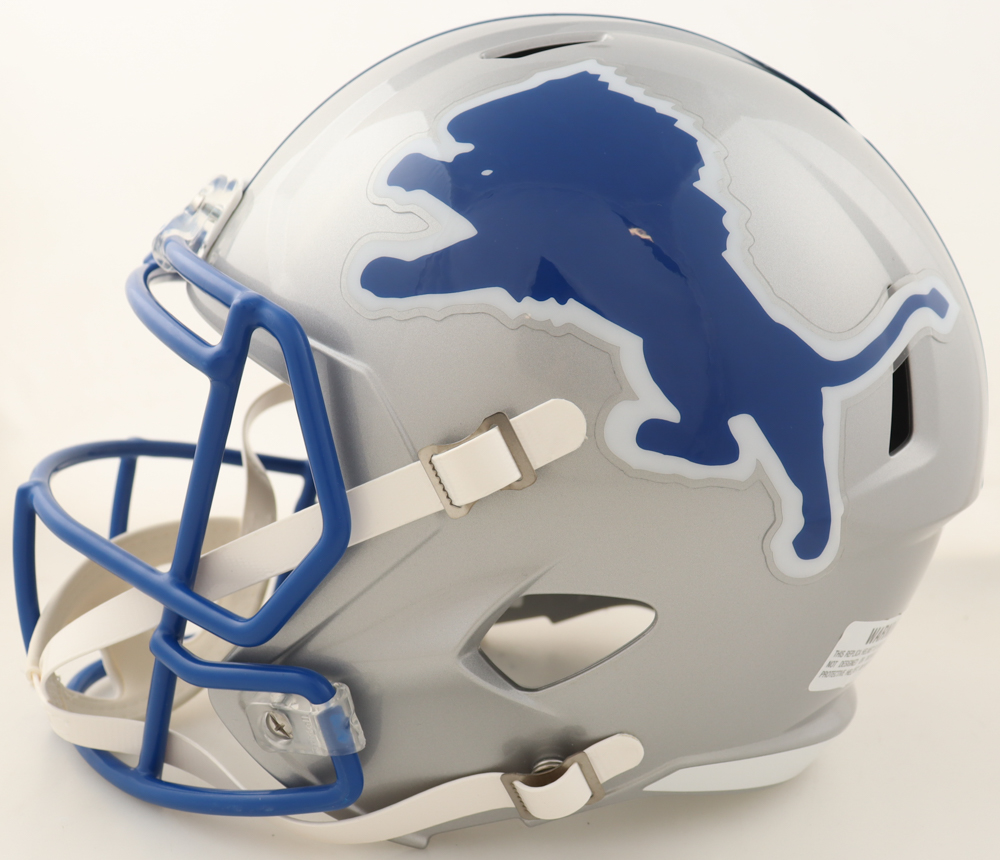 Riddell Detroit Lions full-size replica Throwback speed helmet has been hand-signed by Barry Sanders (HOF).