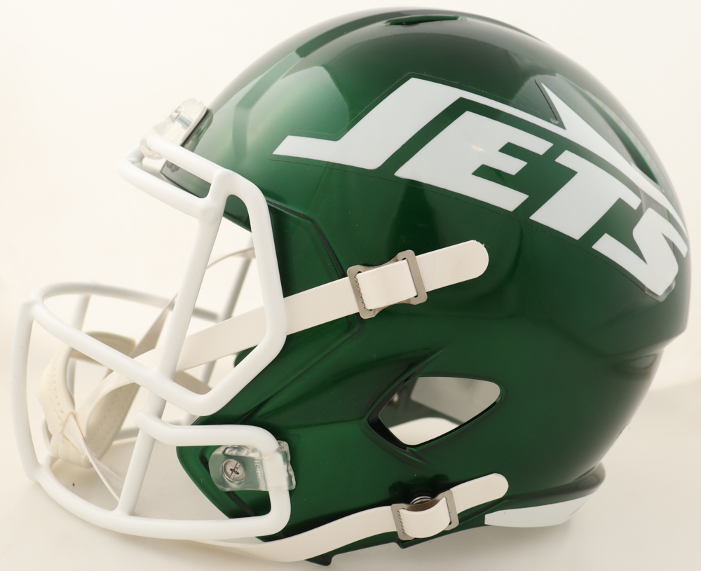 Riddell New York Jets full-size speed replica helmet has been hand-signed by Sauce Gardner.