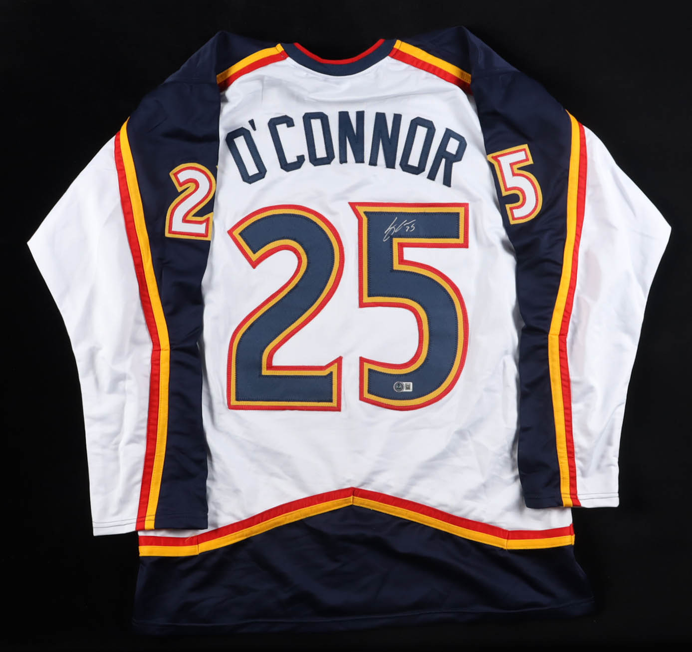 Custom jersey with everything sewn on, size XL. Hand-signed by Logan O'Connor.