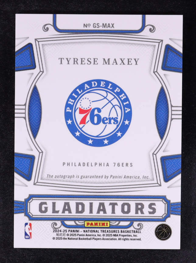 Tyrese Maxey 2024-25 Panini National Treasures Gladiators Signatures Emerald #10 #4/5