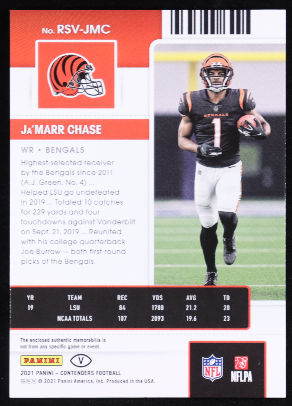 Ja'Marr Chase 2021 Panini Contenders Rookie Ticket #RSV-JMC RC