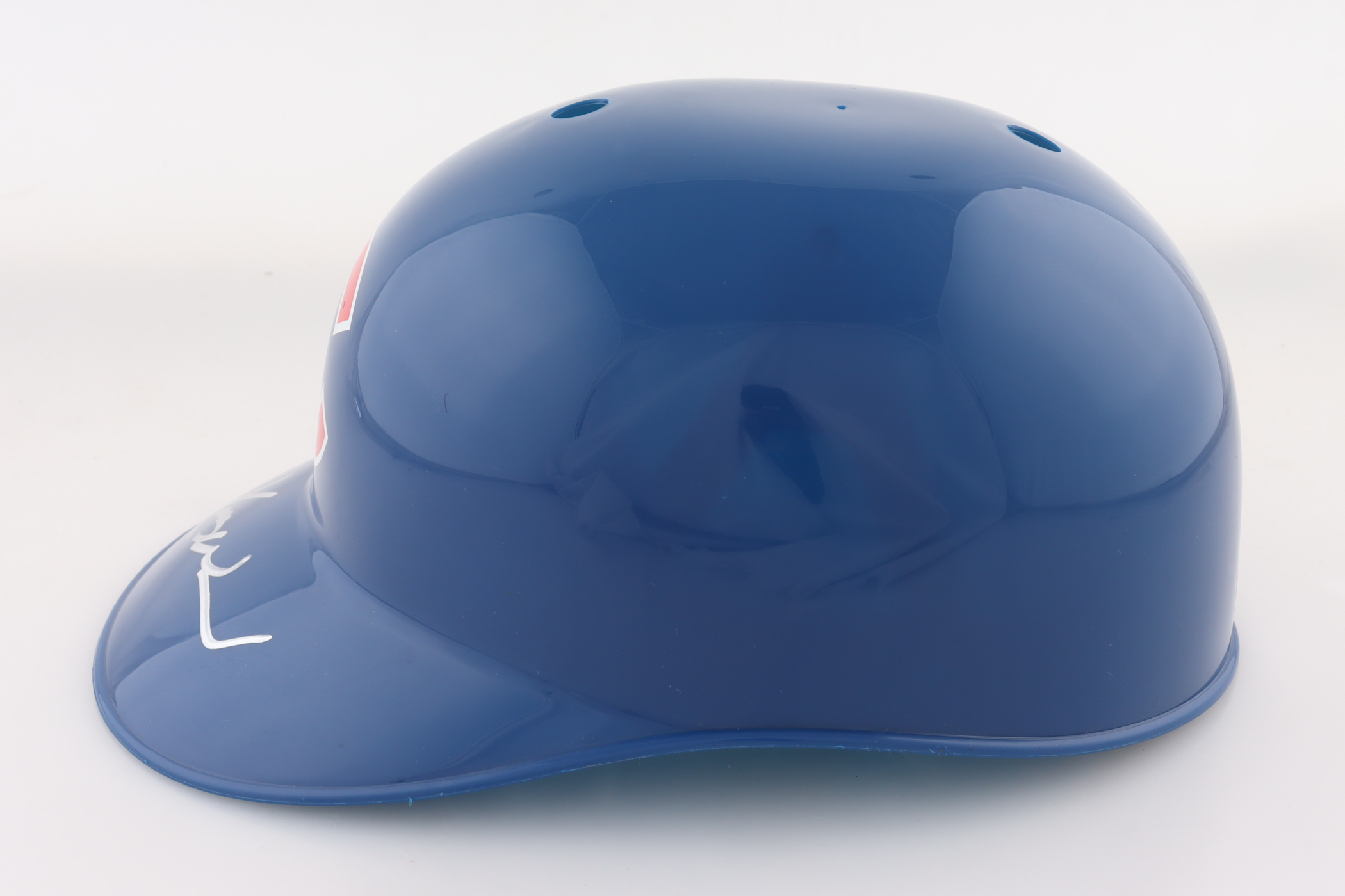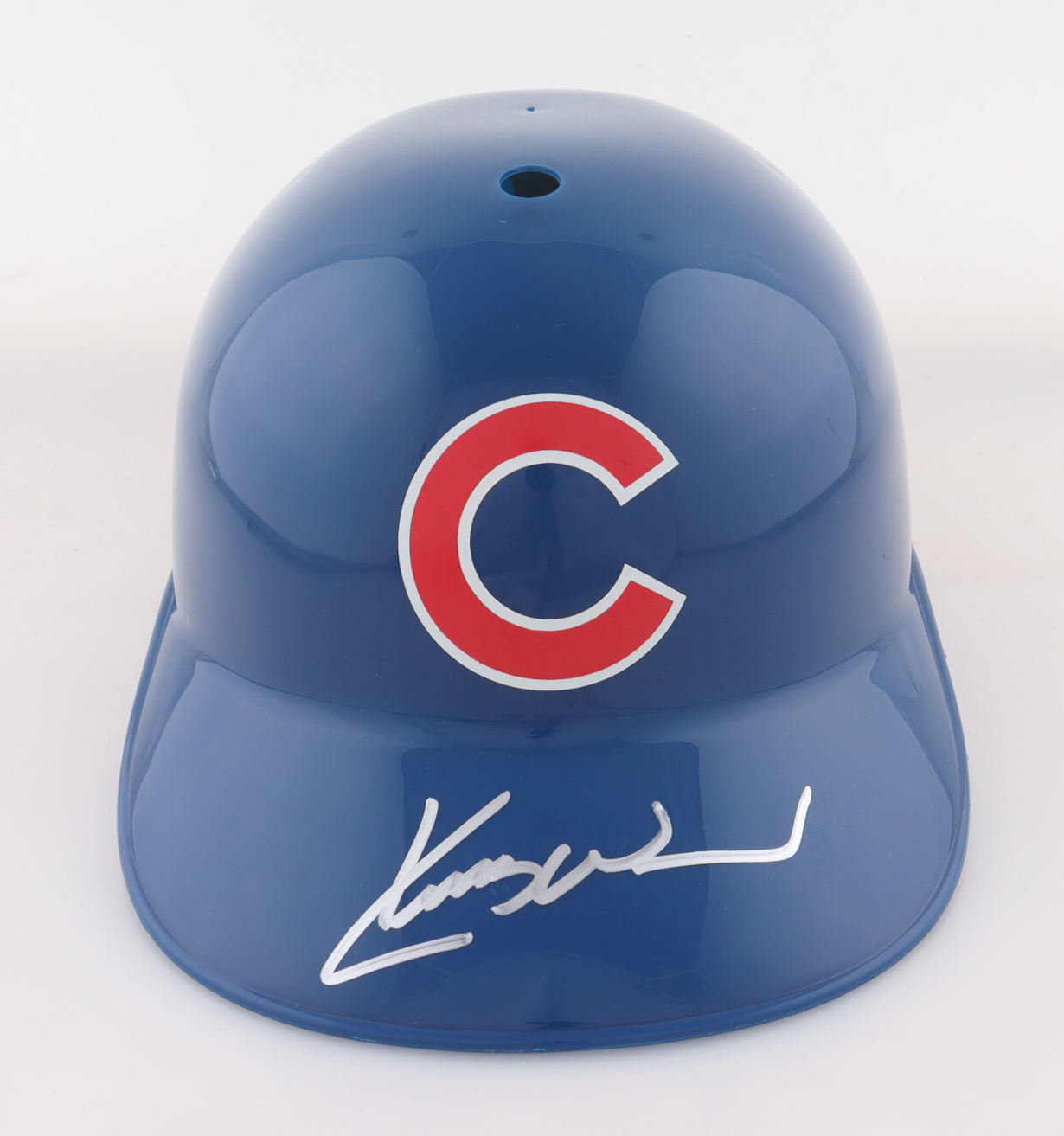 Chicago Cubs full-size plastic souvenir replica batting helmet. Hand-signed by Kerry Wood.