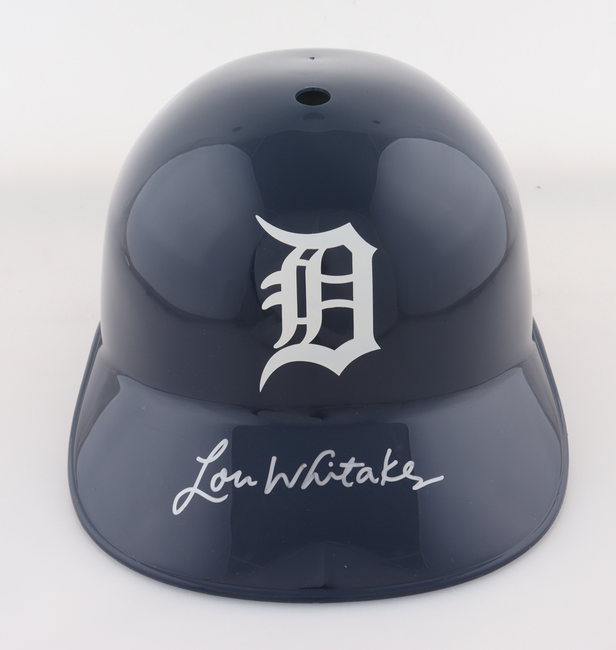 Detroit Tigers full-size plastic souvenir replica batting helmet. Hand-signed by Lou Whitaker.