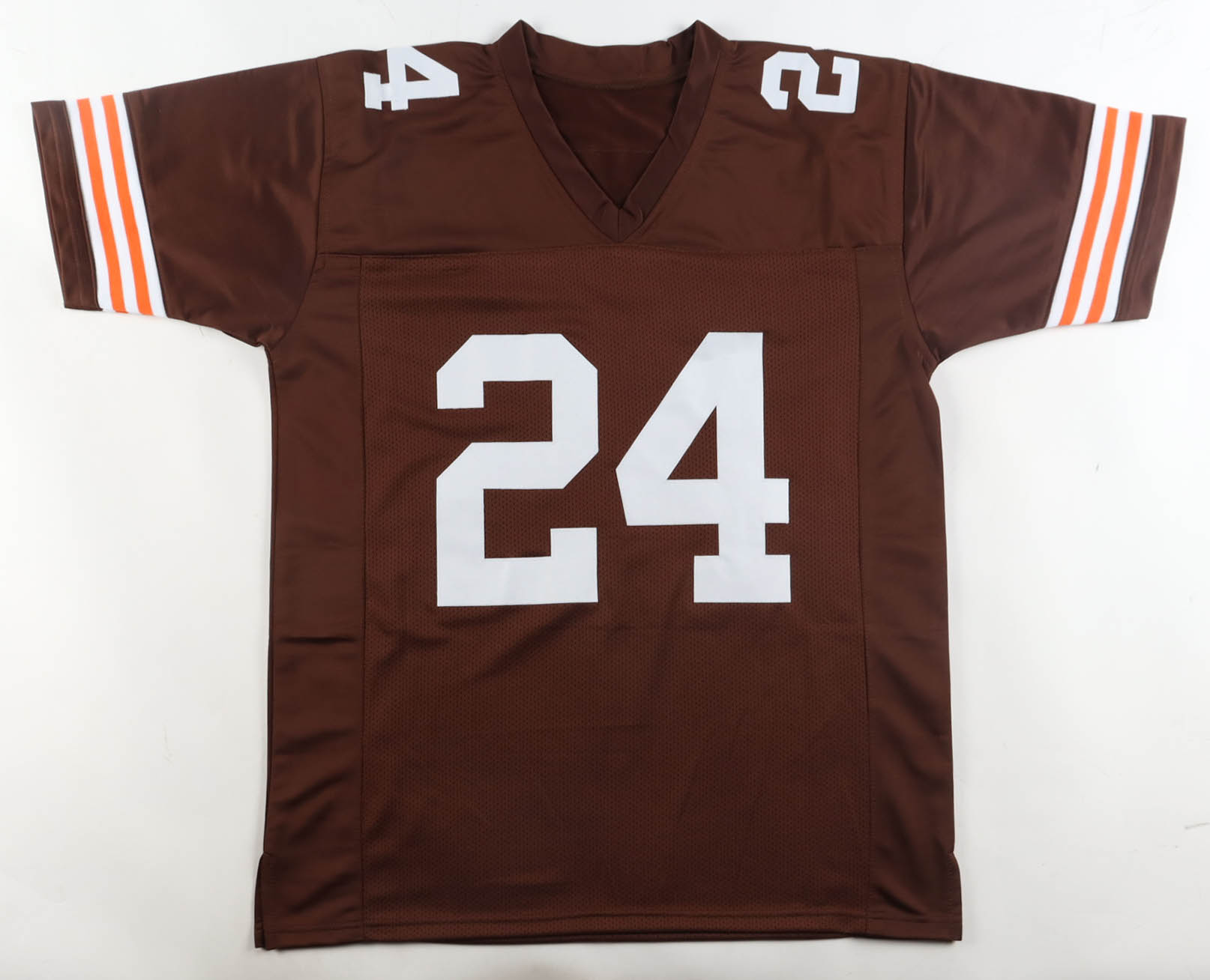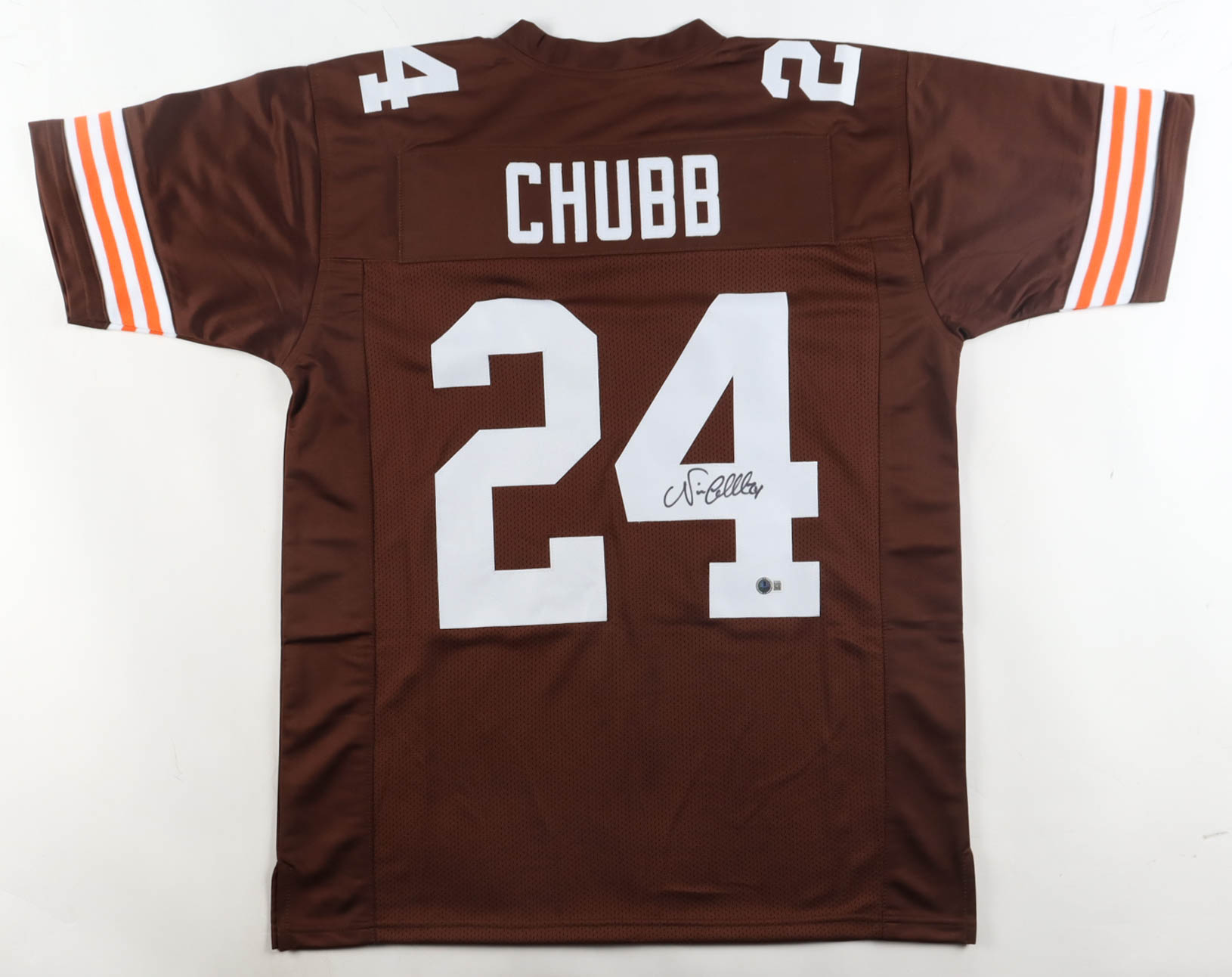 Custom jersey with everything sewn on, size XL. Hand-signed by Nick Chubb.