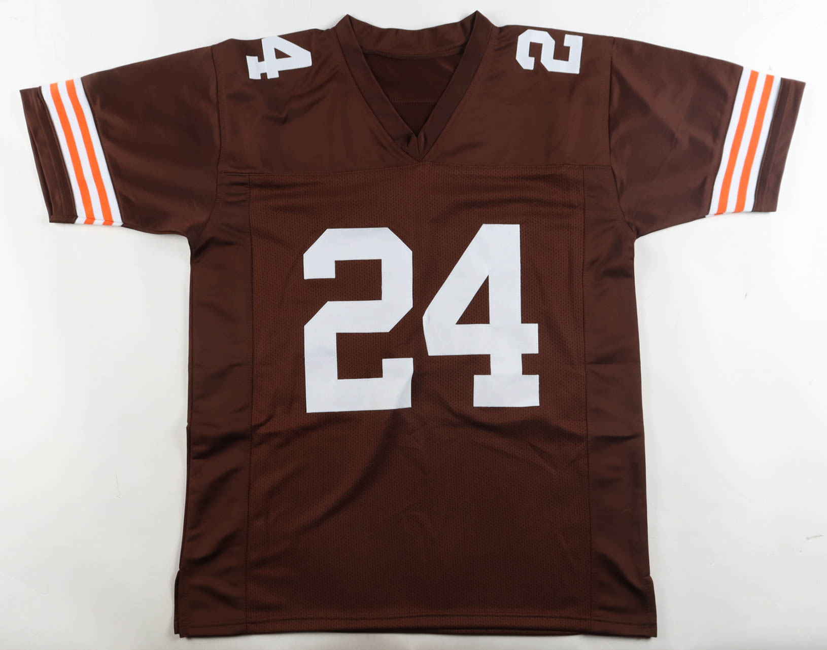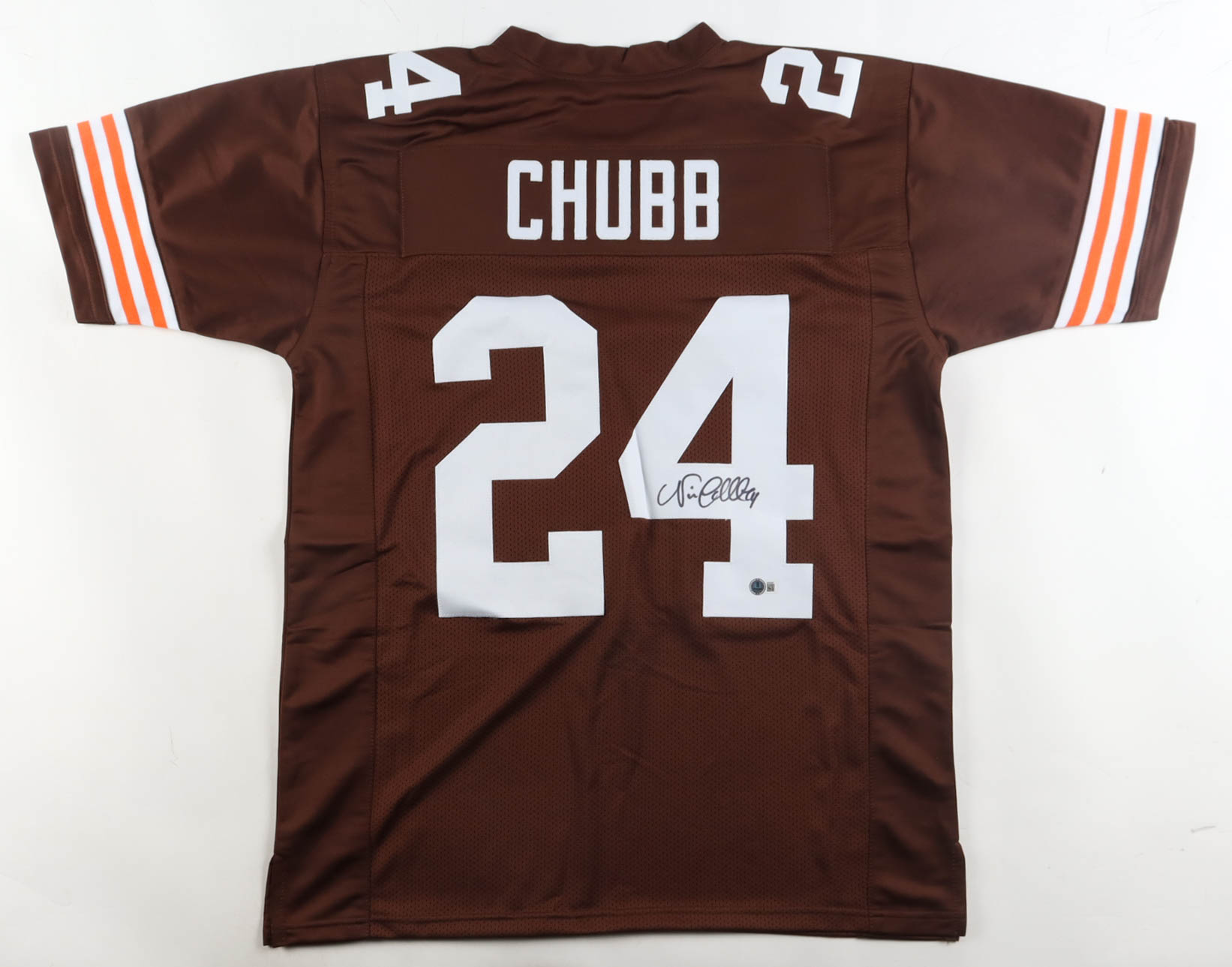 Custom jersey with everything sewn on, size XL. Hand-signed by Nick Chubb.