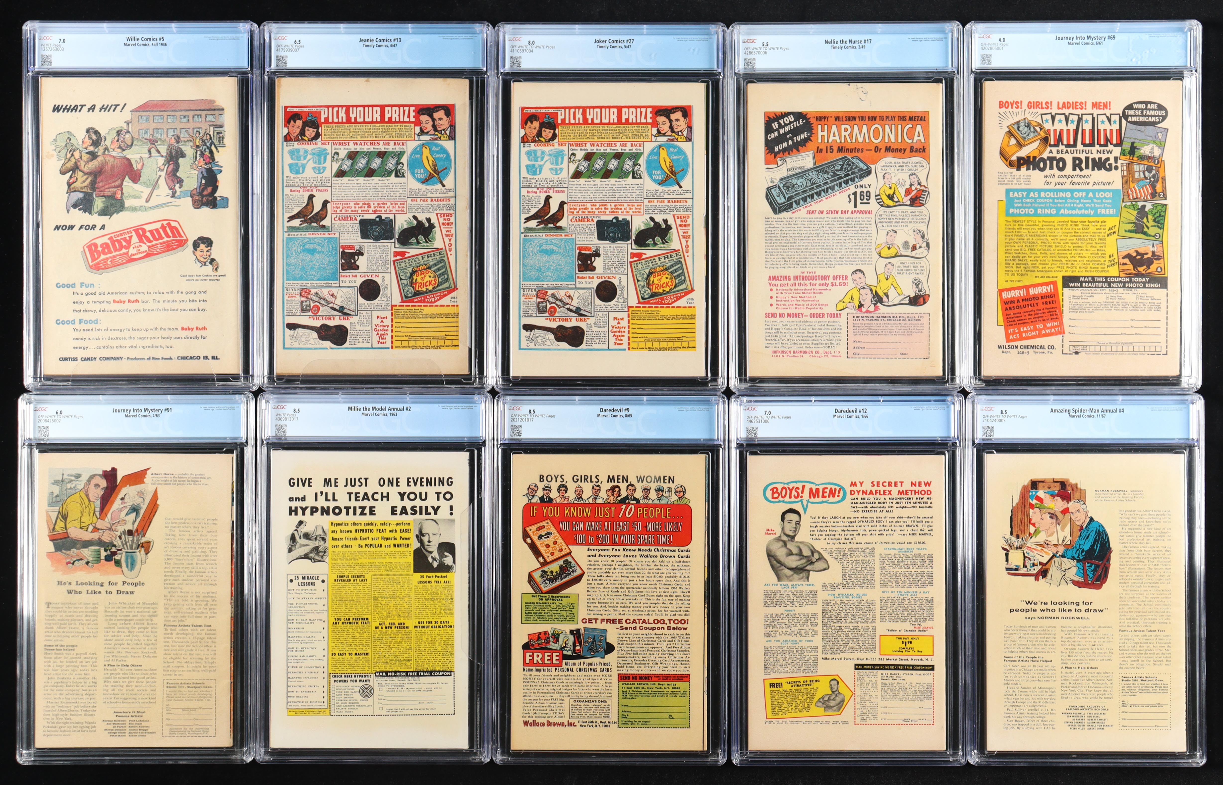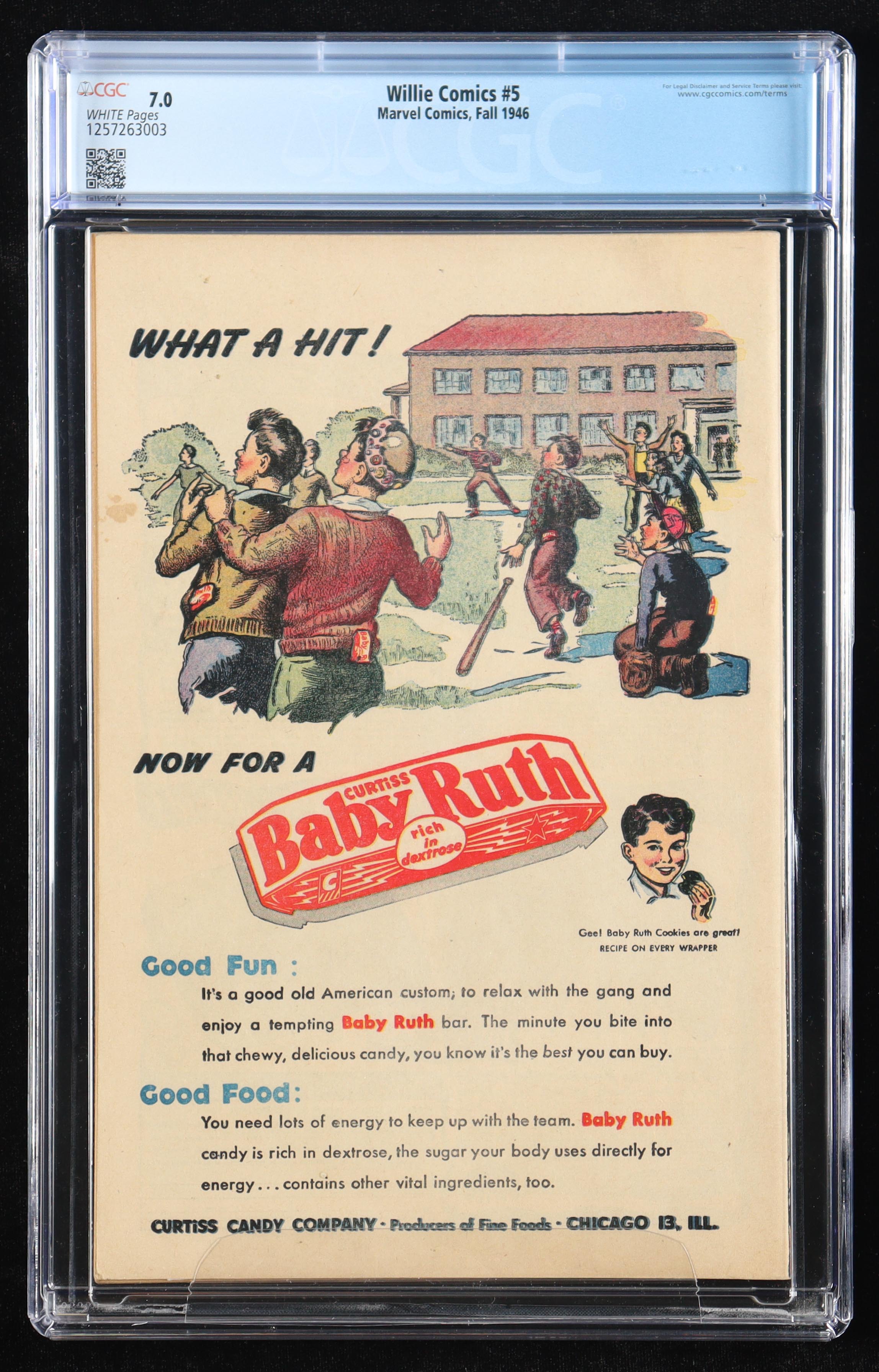 The first Marvel logo, "A Marvel Magazine, was featured on Willie Comics #5 (Fall 1946). The comic available in this set is the fourth highest grade at a CGC 7.0. The three higher grades of this comic have been confirmed as not for sale.