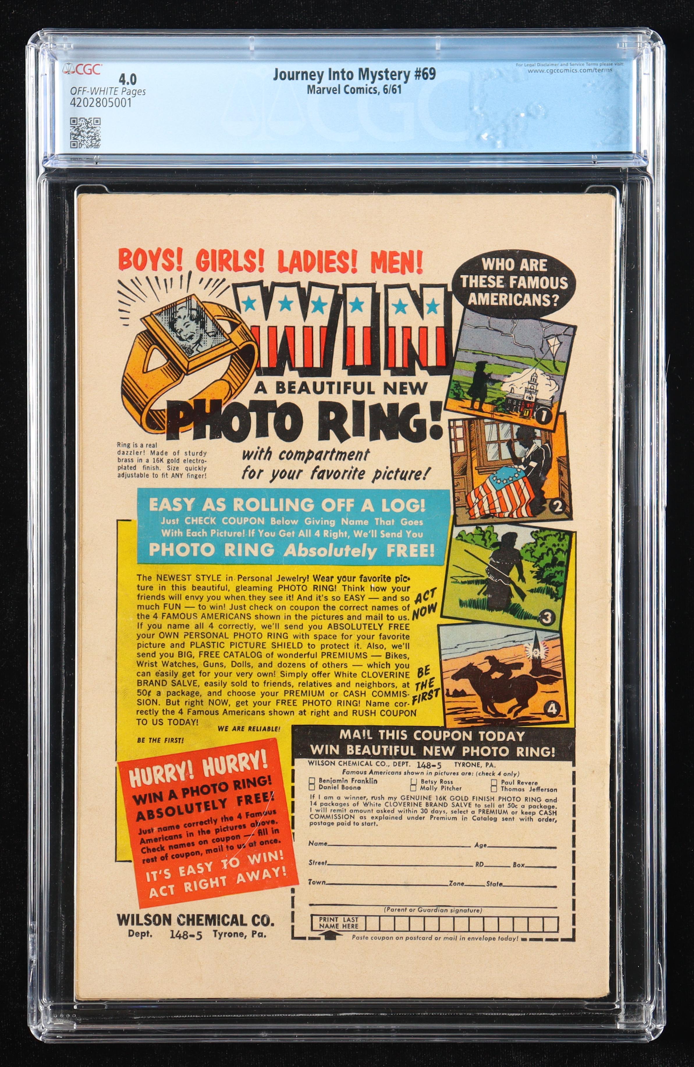 Journey into Mystery #69 (CGC 4.0) - 5th Marvel Brand Emblem logo, 1st "[MC]" rectangular logo