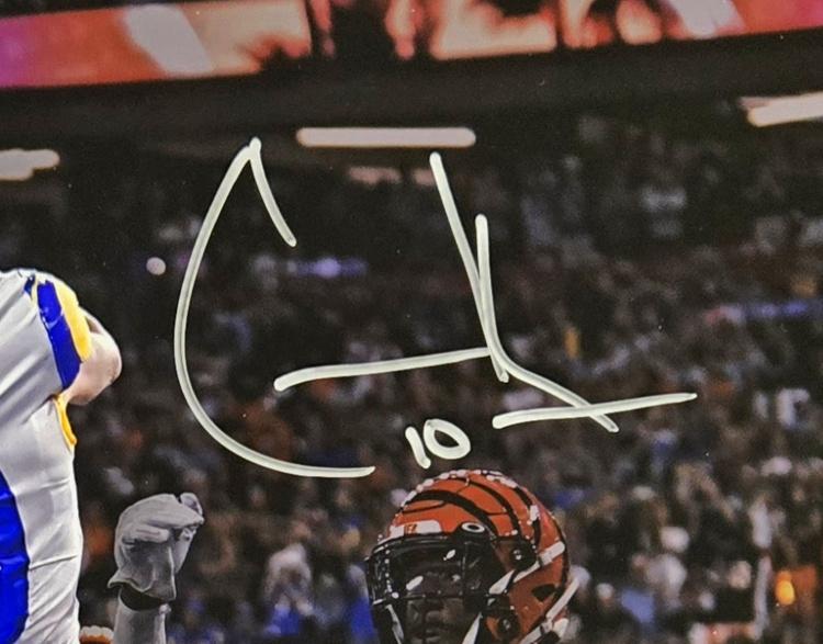 Photo measures 16" x 20" in size and has been hand-signed by Cooper Kupp (Los Angeles Rams).