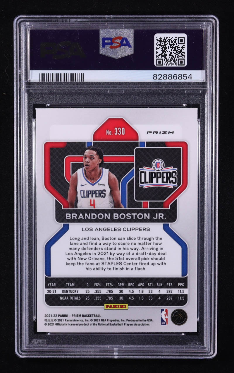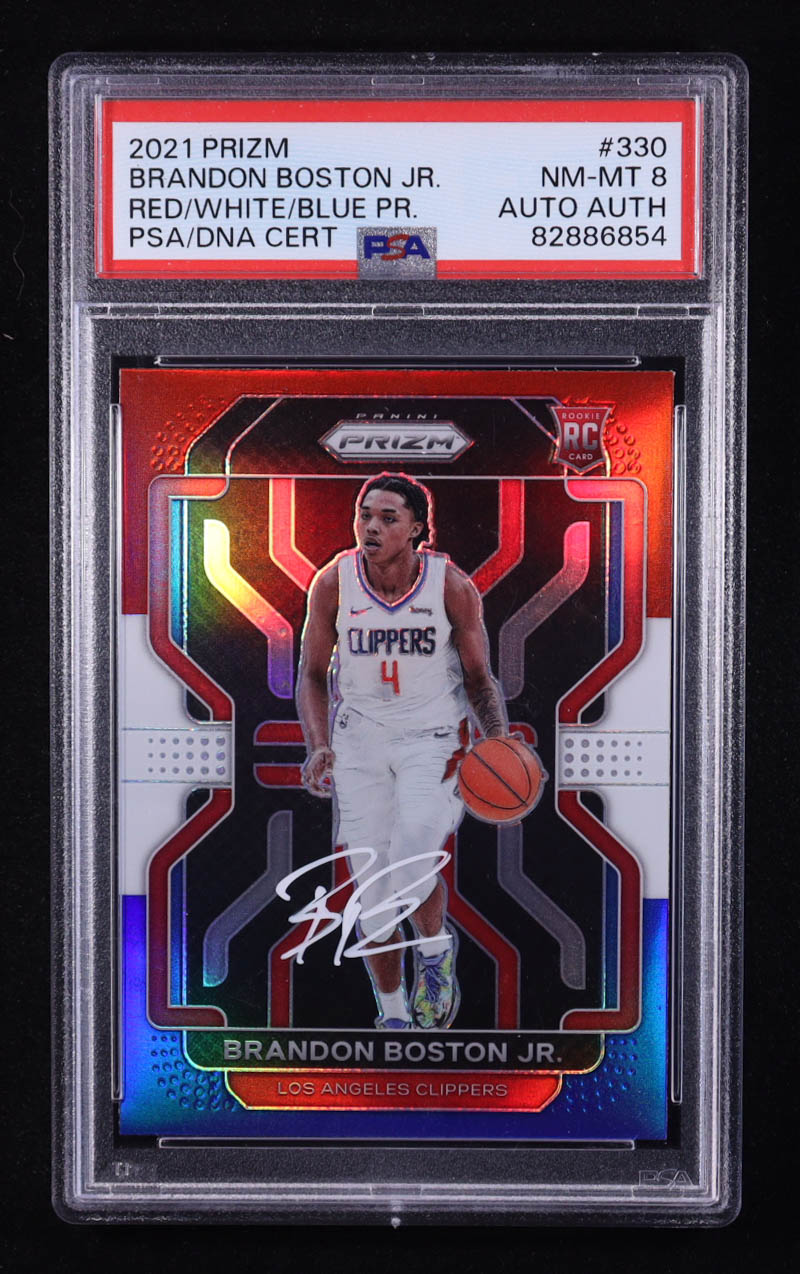 Brandon Boston Jr. Signed 2021-22 Panini Prizm Prizms Red White and Blue #330 RC (PSA 8)