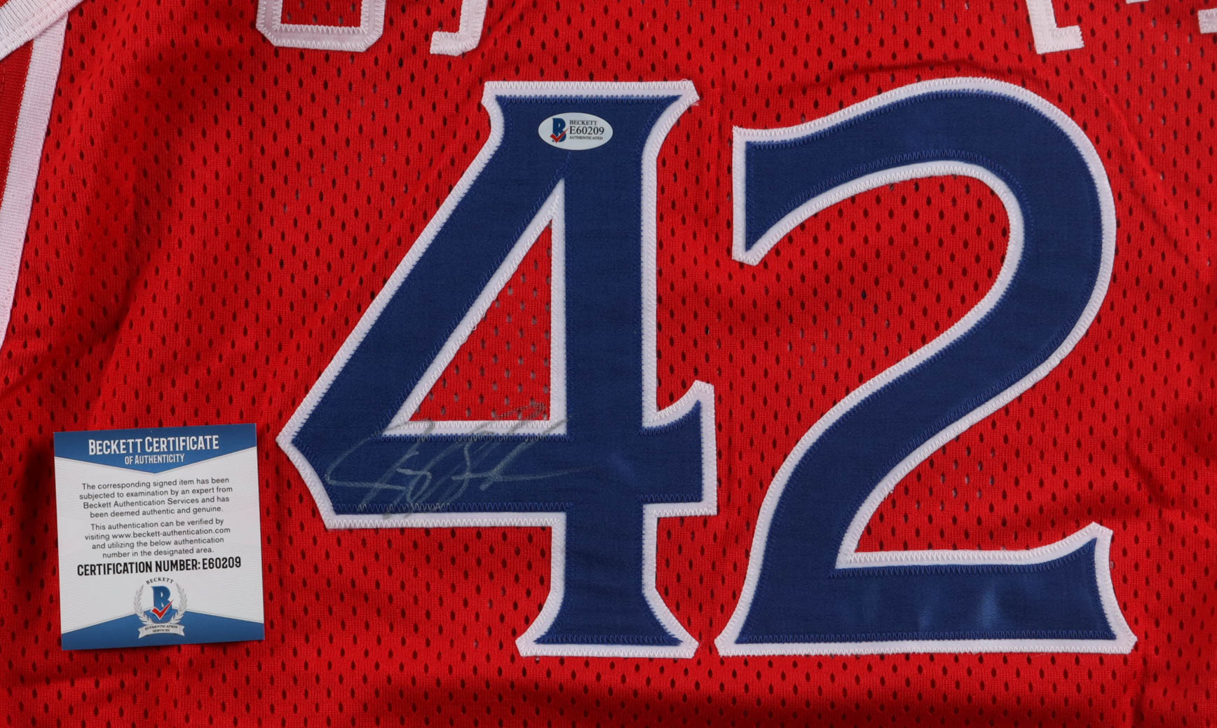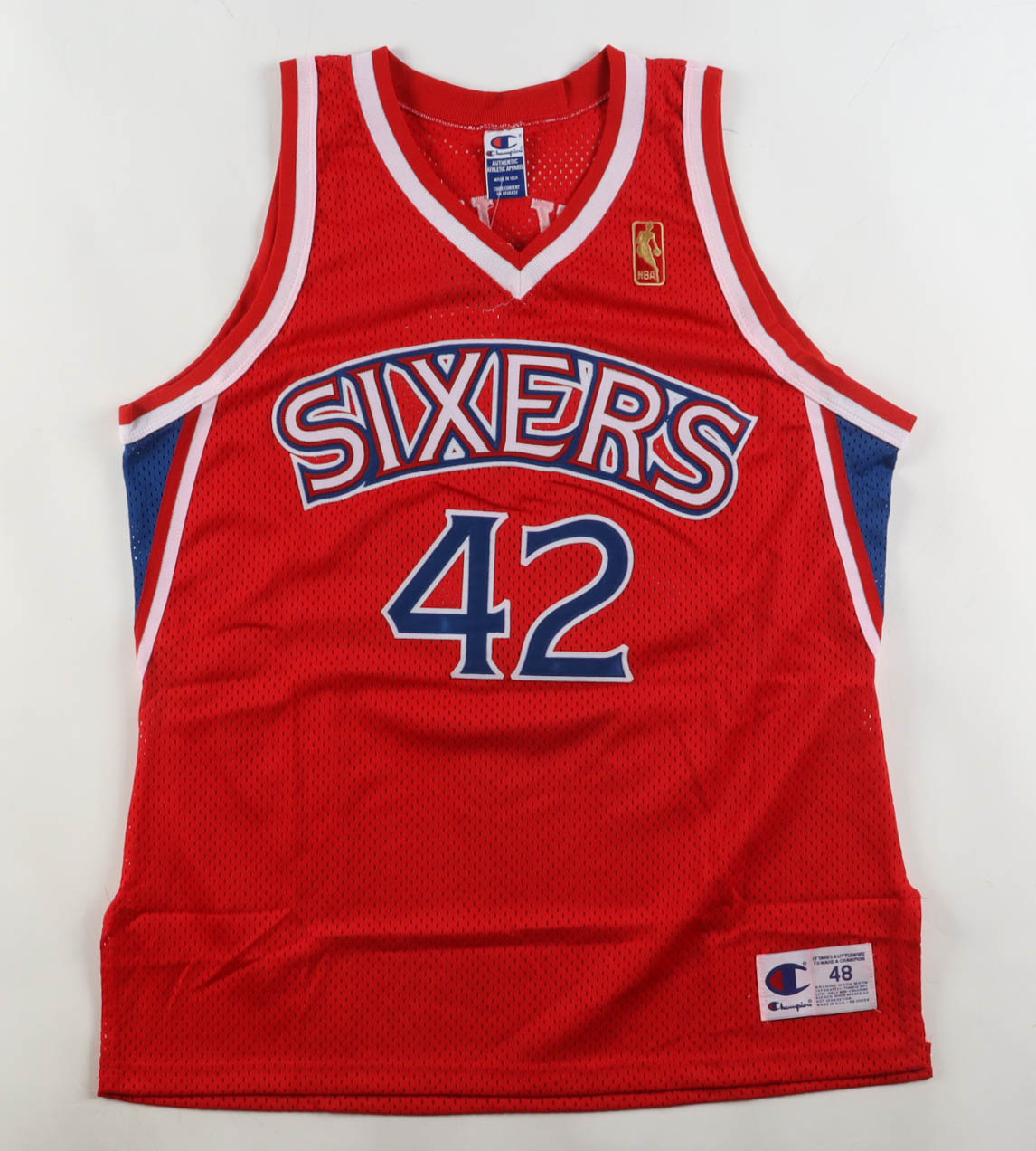 Champion jersey with everything sewn on, size XL. Hand-signed by Jerry Stackhouse (Philadelphia 76ers).
