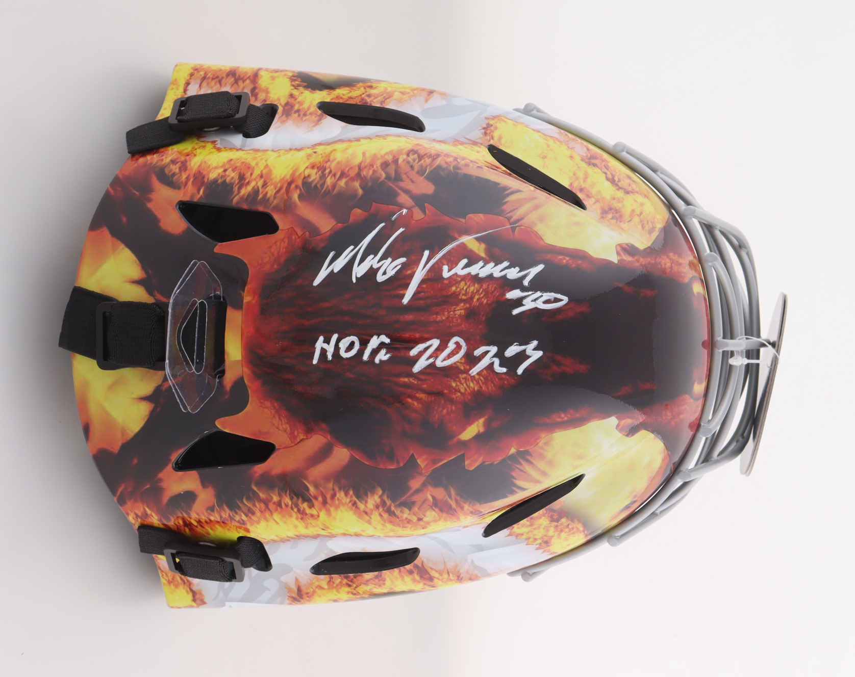 Mike Vernon Signed Flames Full-Size Goalie Mask Inscribed "HOF 2023" (Schwartz)