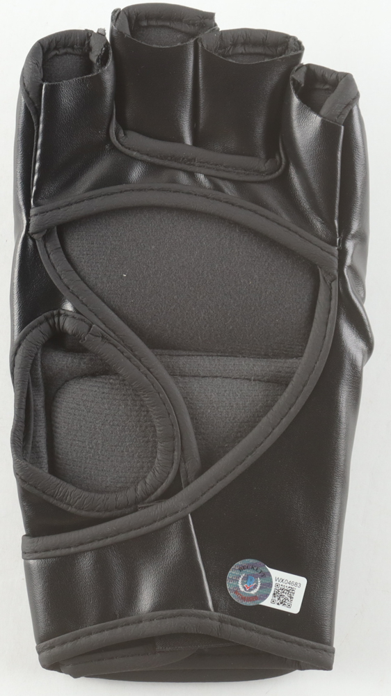 Custom left-handed glove is hand-signed by Royce Gracie (HOF).