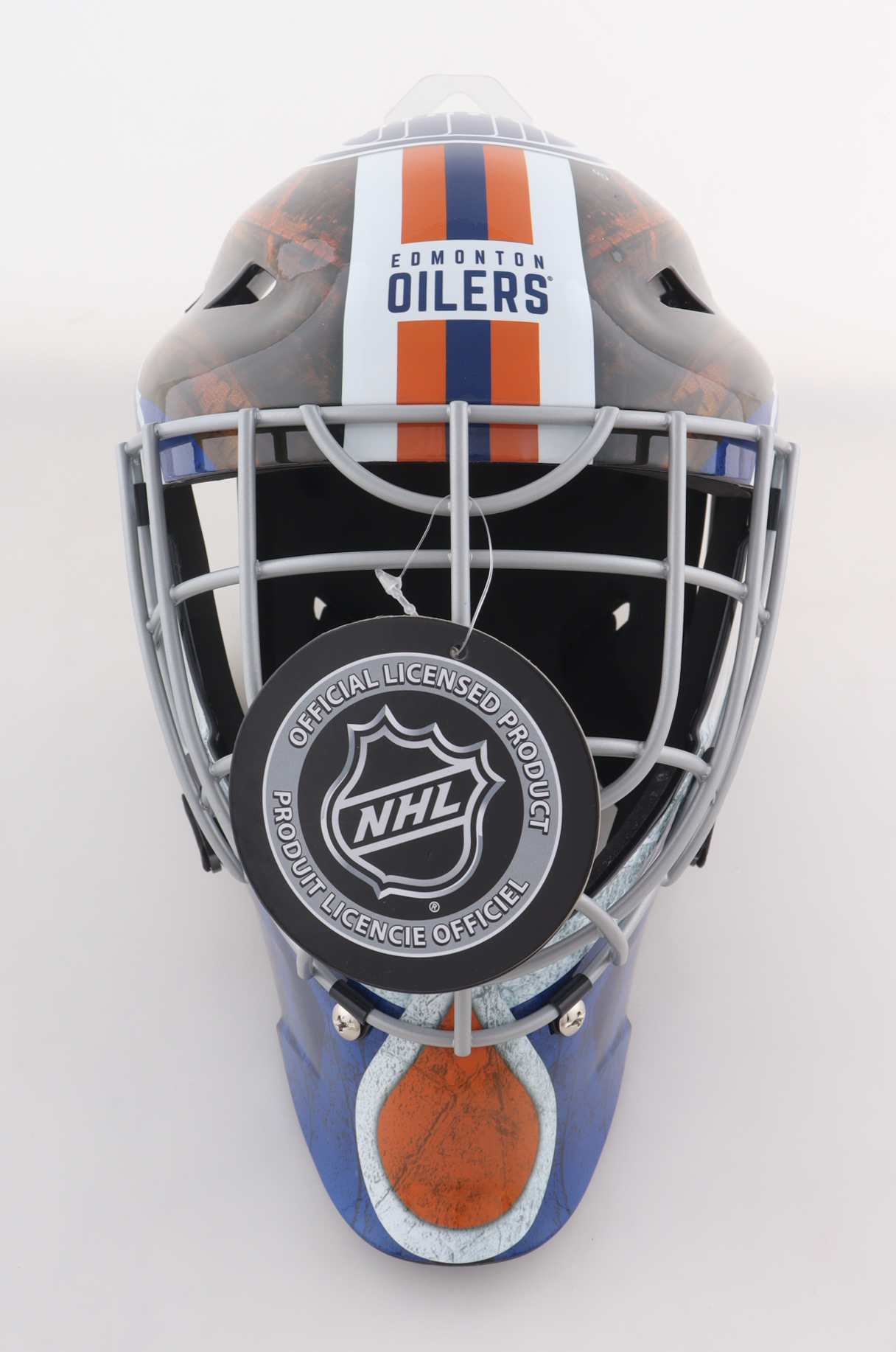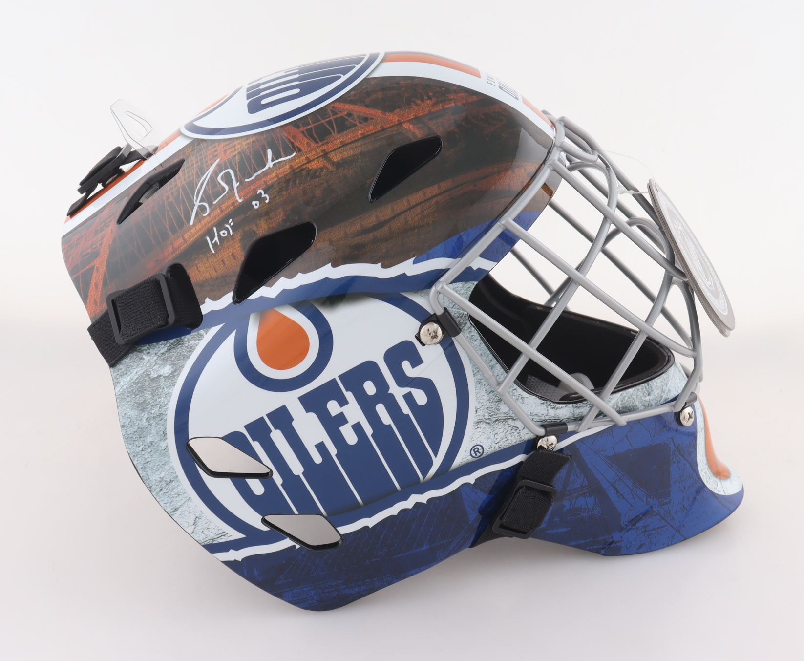 Edmonton Oilers goalie mask has been hand-signed and inscribed by Grant Fuhr (HOF).
