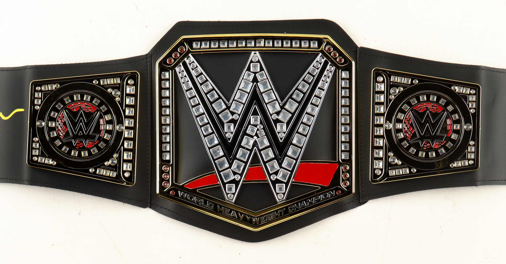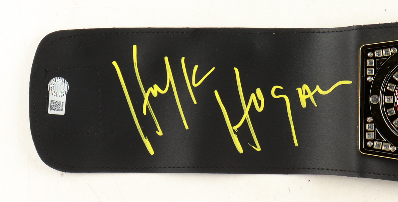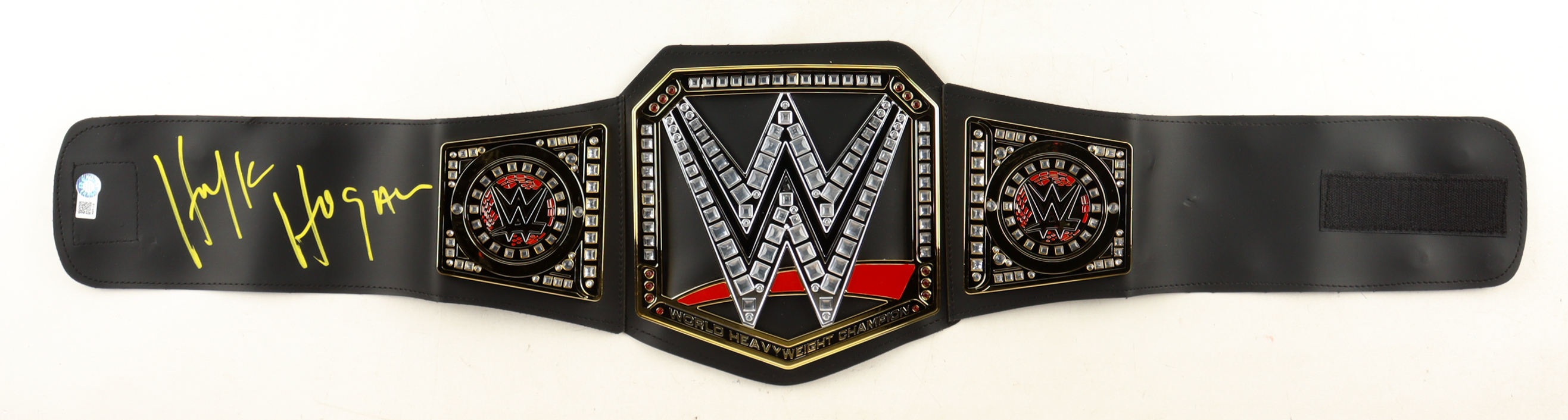 Replica WWE Championship Belt (plastic) measures 38" in size and is hand-signed by Hulk Hogan (D. 2025, HOF).