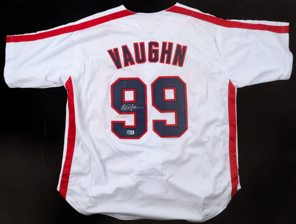 Custom jersey with everything sewn on, size XL. Hand-signed by Charlie Sheen (Ricky "Wild Thing" Vaughn).